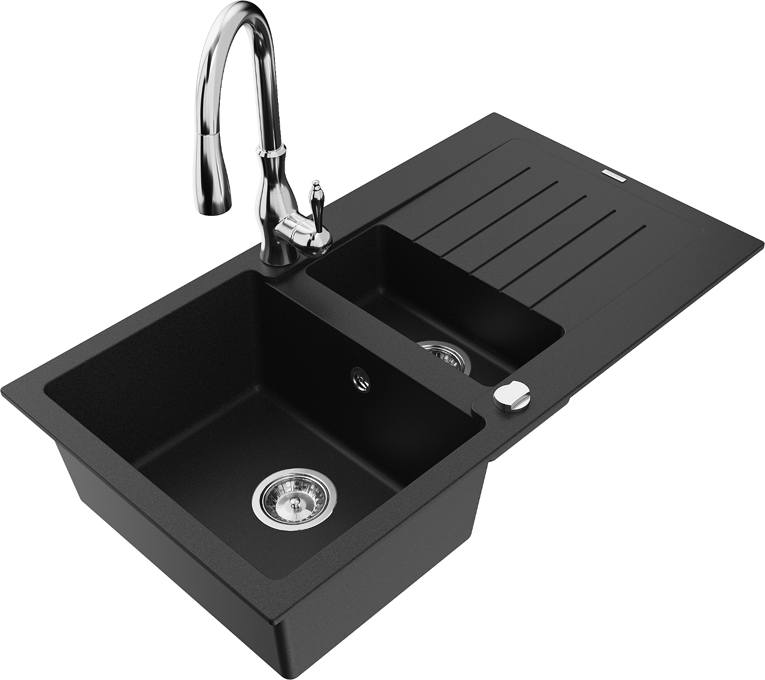 Mexen Matias chiuvetă din granit cu 1,5 compartimente cu scurgător și baterie de bucătărie Savita, negru - 6502-77-672601-00