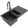 Mexen Matias chiuvetă de granit cu 1,5 compartimente, cu scurgător și baterie de bucătărie Savita, negru