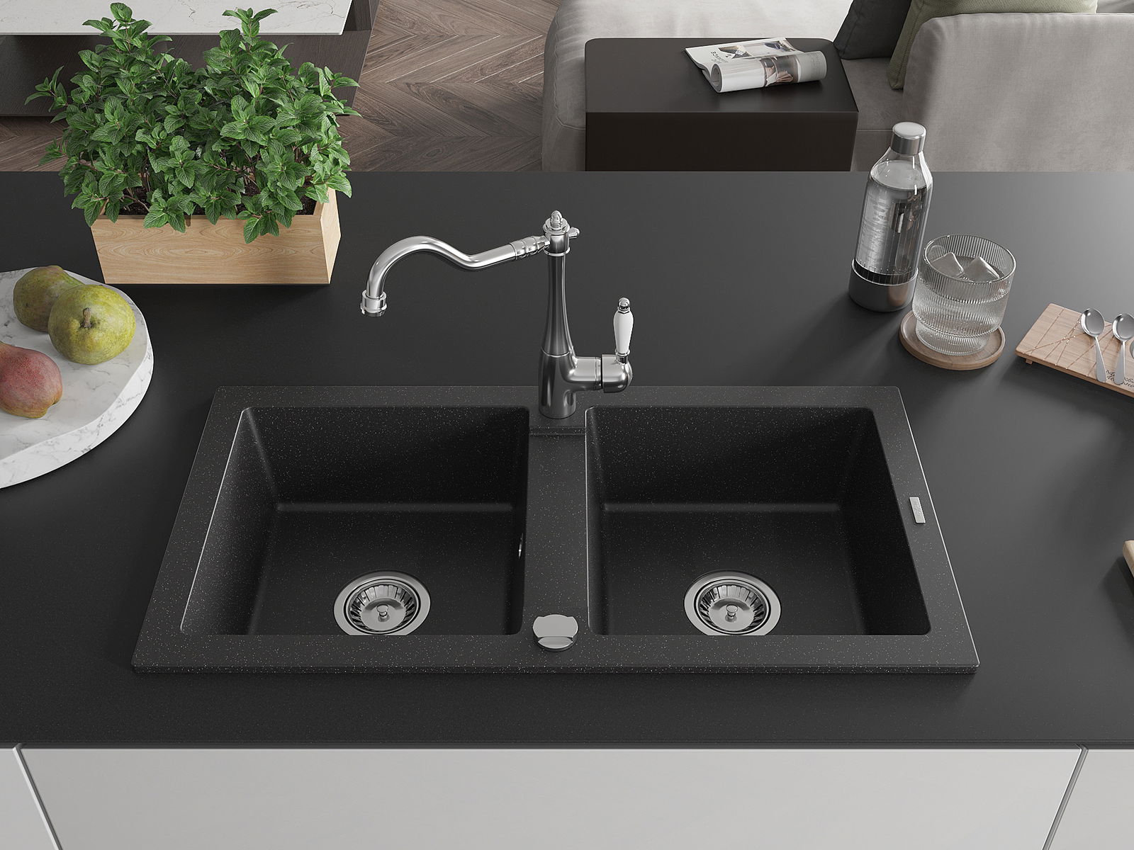 Chiuveta a fost realizată din granit de înaltă calitate. Reprezintă un complement elegant și, mai presus de toate, practic pentru orice bucătărie, indiferent de stilul acesteia. Calitatea înaltă și durabilitatea granitului asigură o utilizare de lungă durată.