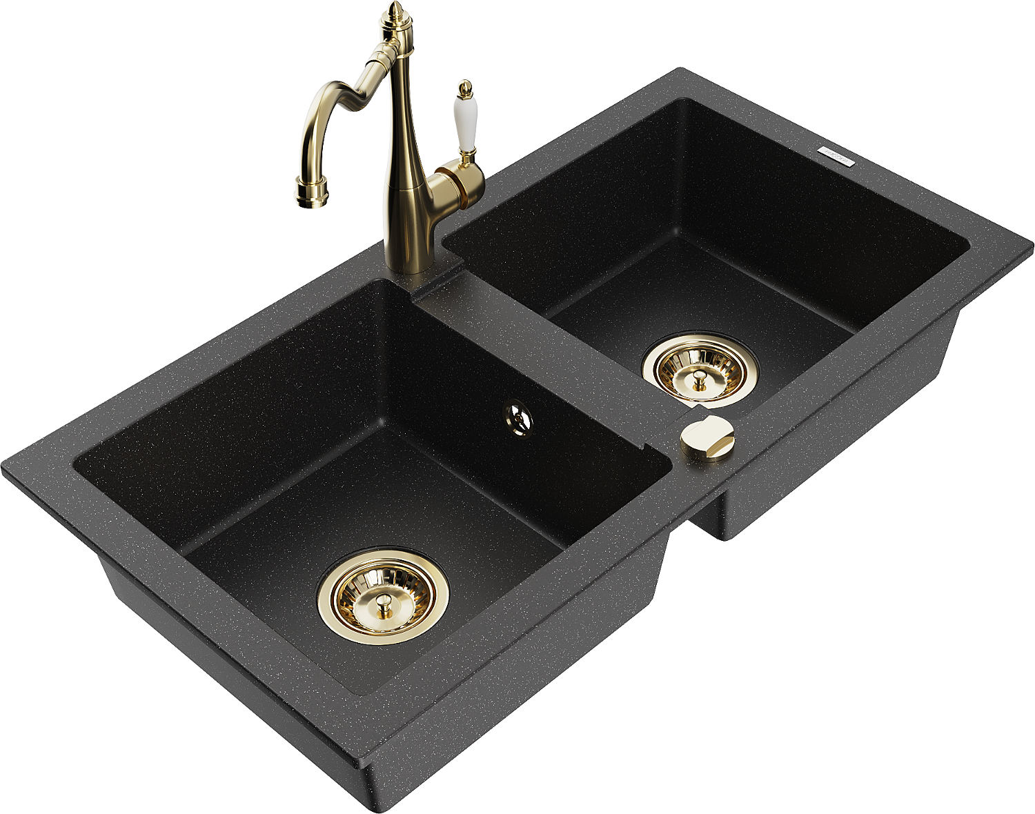 Mexen Mario chiuvetă de bucătărie din granit cu 2 compartimente și baterie Carla, negru/argintiu metalic - 6504-73-670700-50