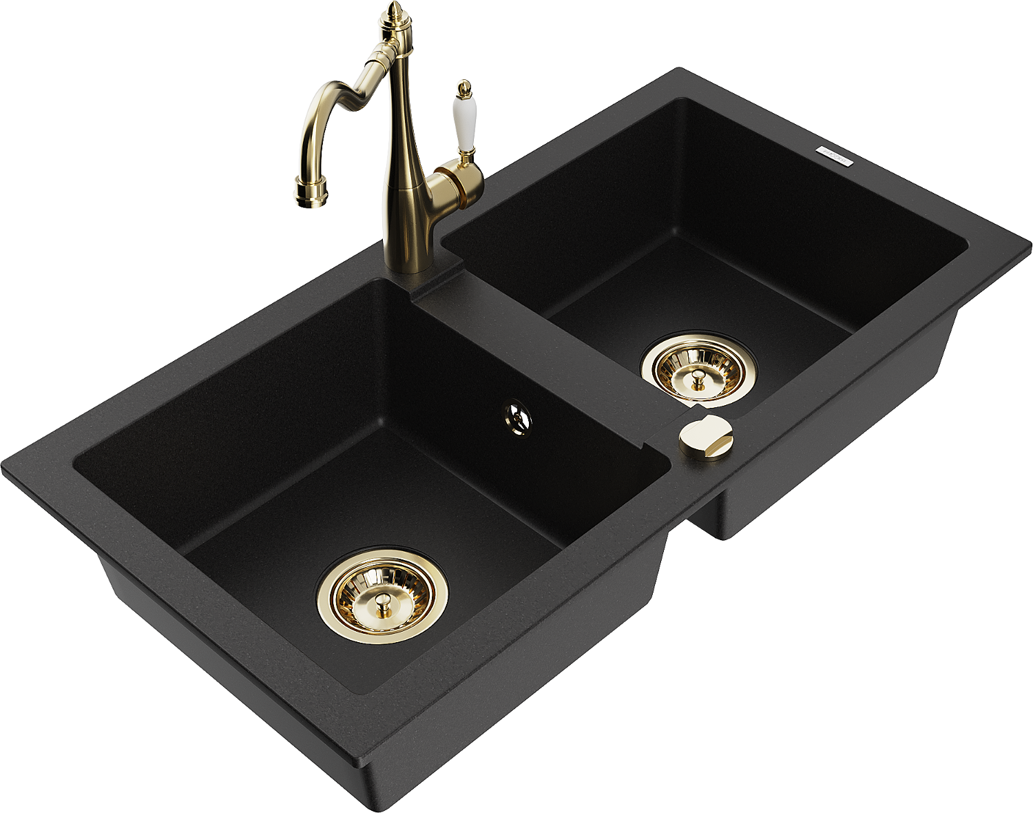 Mexen Mario chiuvetă de granit cu 2 camere cu baterie de bucătărie Carla, negru - 6504-77-670700-50