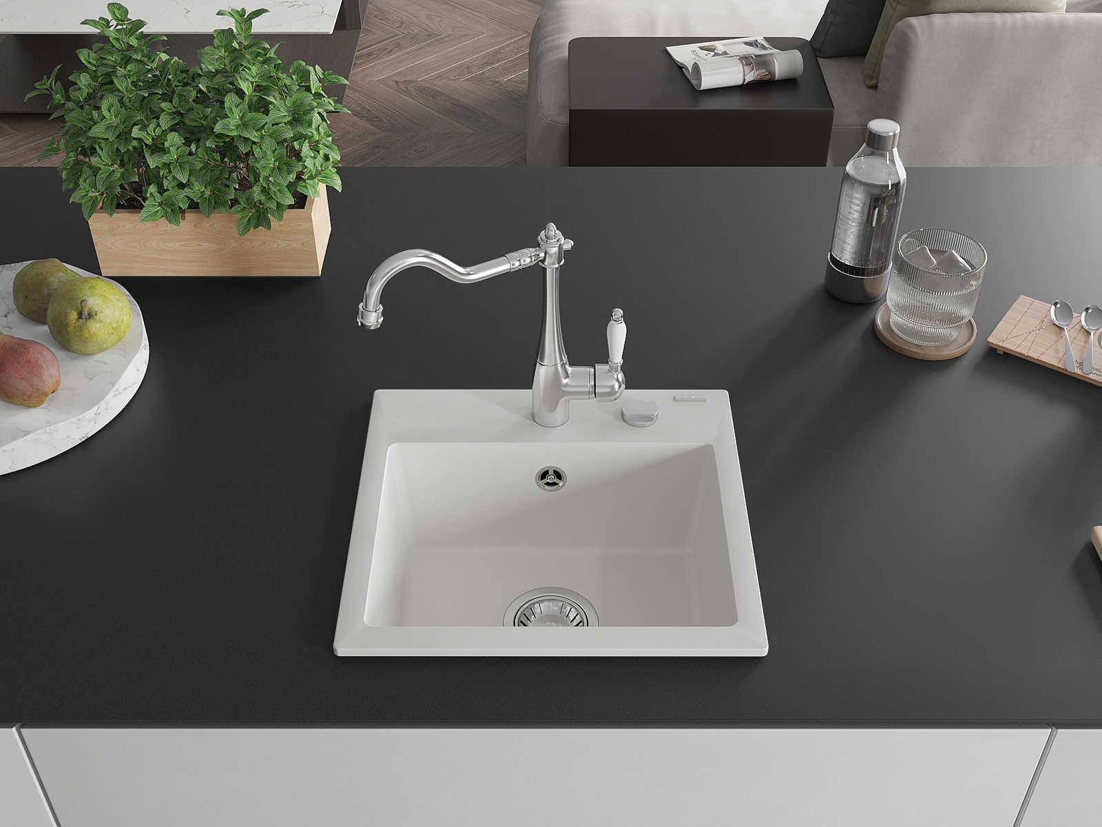 Suprafața chiuvetei este rezistentă la pete și decolorarea, datorită căreia este ușor de curățat și își păstrează culoarea mult timp. Estetică și practic completarea fiecărei bucătării.