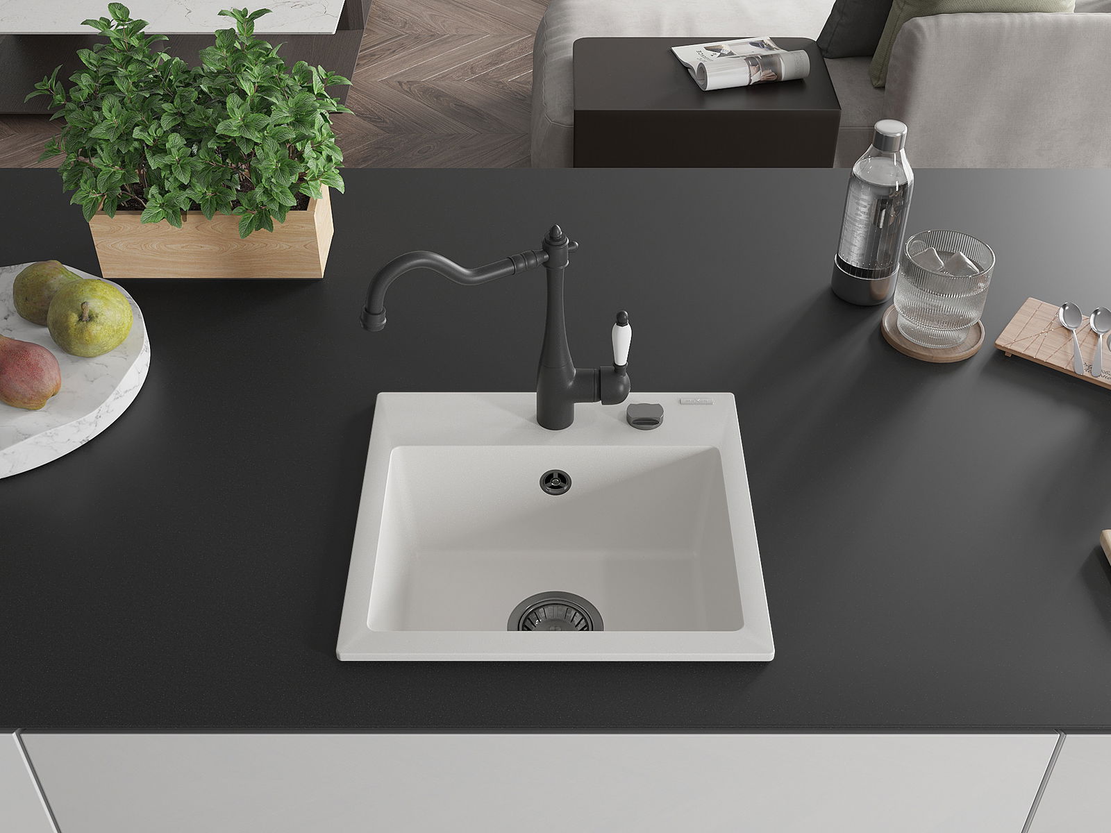 Suprafața chiuvetei este rezistentă la pete și decolorarea, datorită căreia este ușor de curățat și își păstrează culoarea mult timp. Estetică și practic completarea fiecărei bucătării.