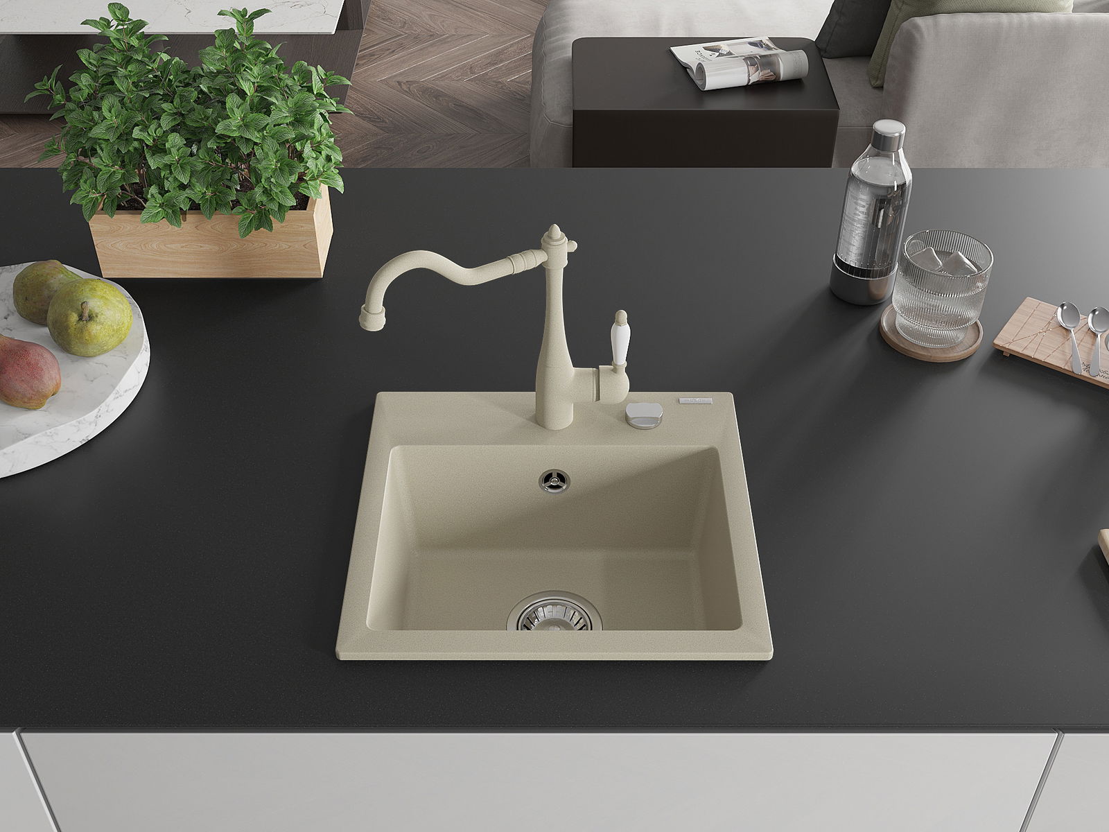 Suprafața chiuvetei este rezistentă la pete și decolorarea, datorită căreia este ușor de curățat și își păstrează culoarea mult timp. Estetică și practic completarea fiecărei bucătării.