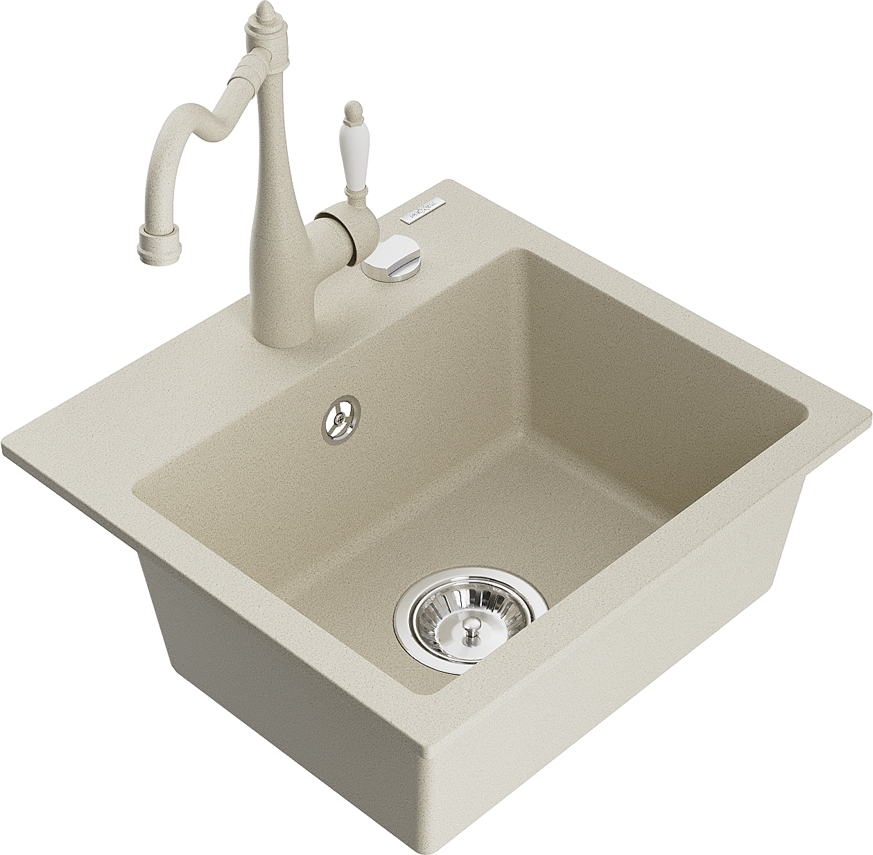 Chiuvetă de bucătărie din granit Mexen Milo 1-cameră cu baterie de bucătărie Carla, bej - 6505-69-670700-69