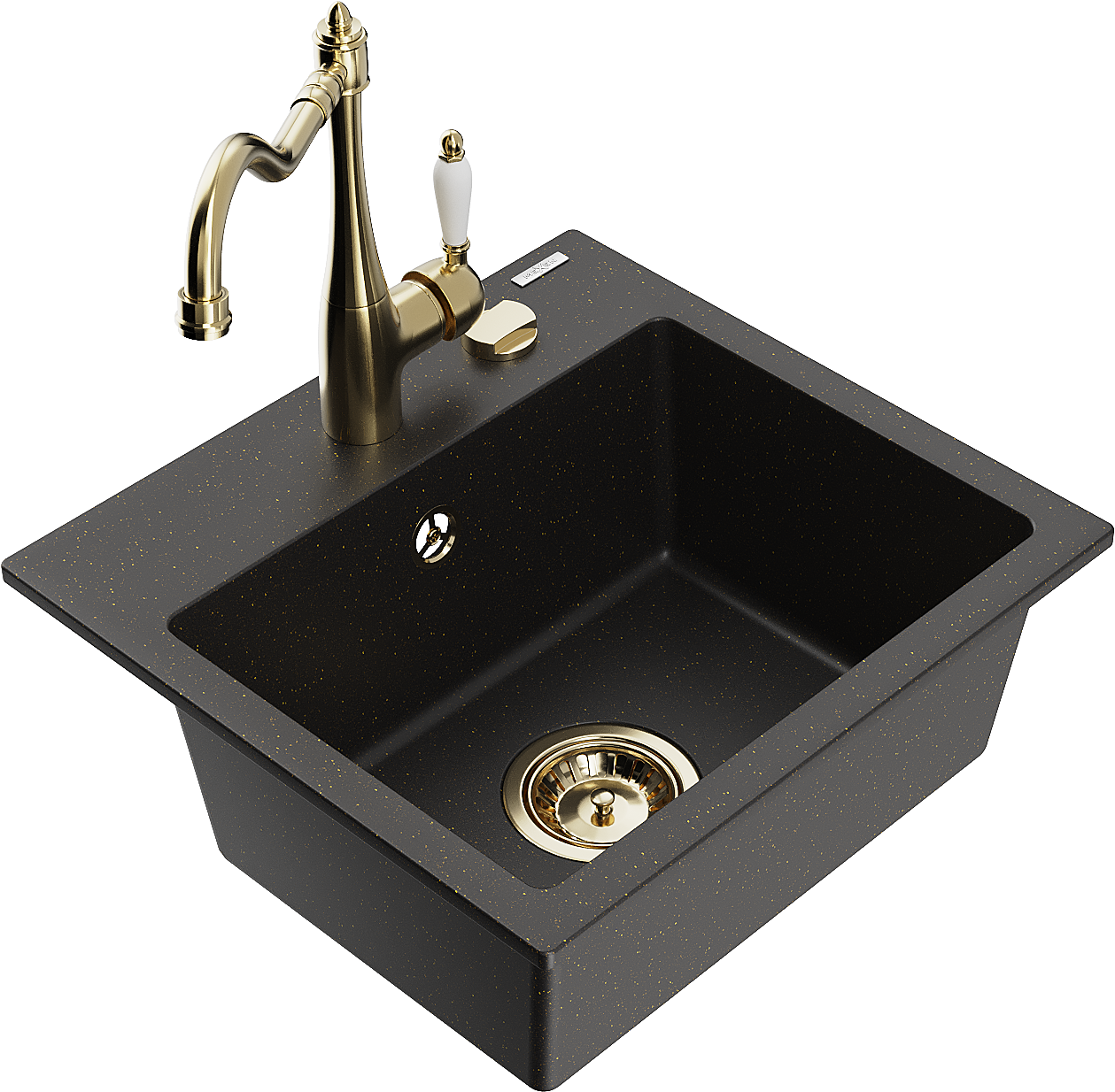 Mexen Milo chiuvetă de bucătărie din granit cu 1 cuvă și baterie de bucătărie Carla, negru/auriu metalic - 6505-75-670700-50