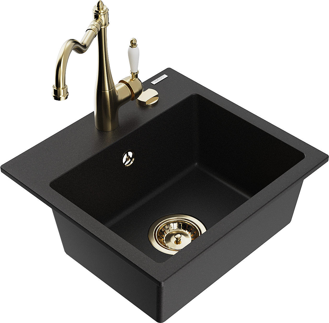 Mexen Milo chiuvetă de bucătărie din granit cu 1 compartiment și robinet de bucătărie Carla, negru - 6505-77-670700-50