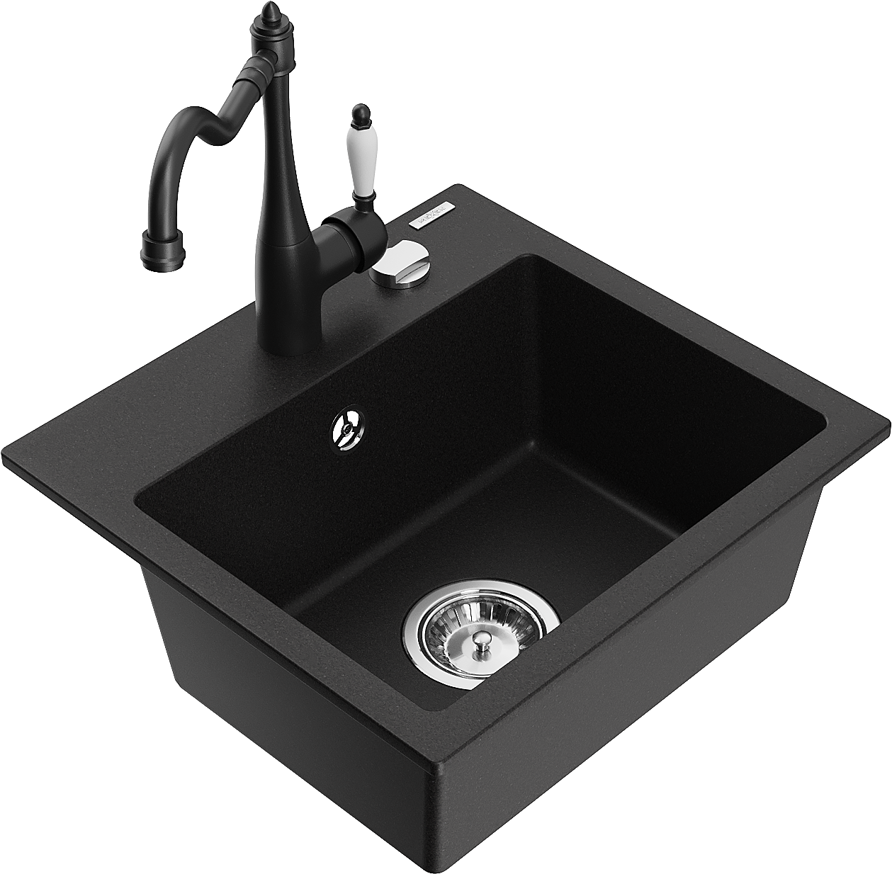 Mexen Milo chiuvetă de granit cu 1 compartiment cu baterie de bucătărie Carla, negru - 6505-77-670700-70