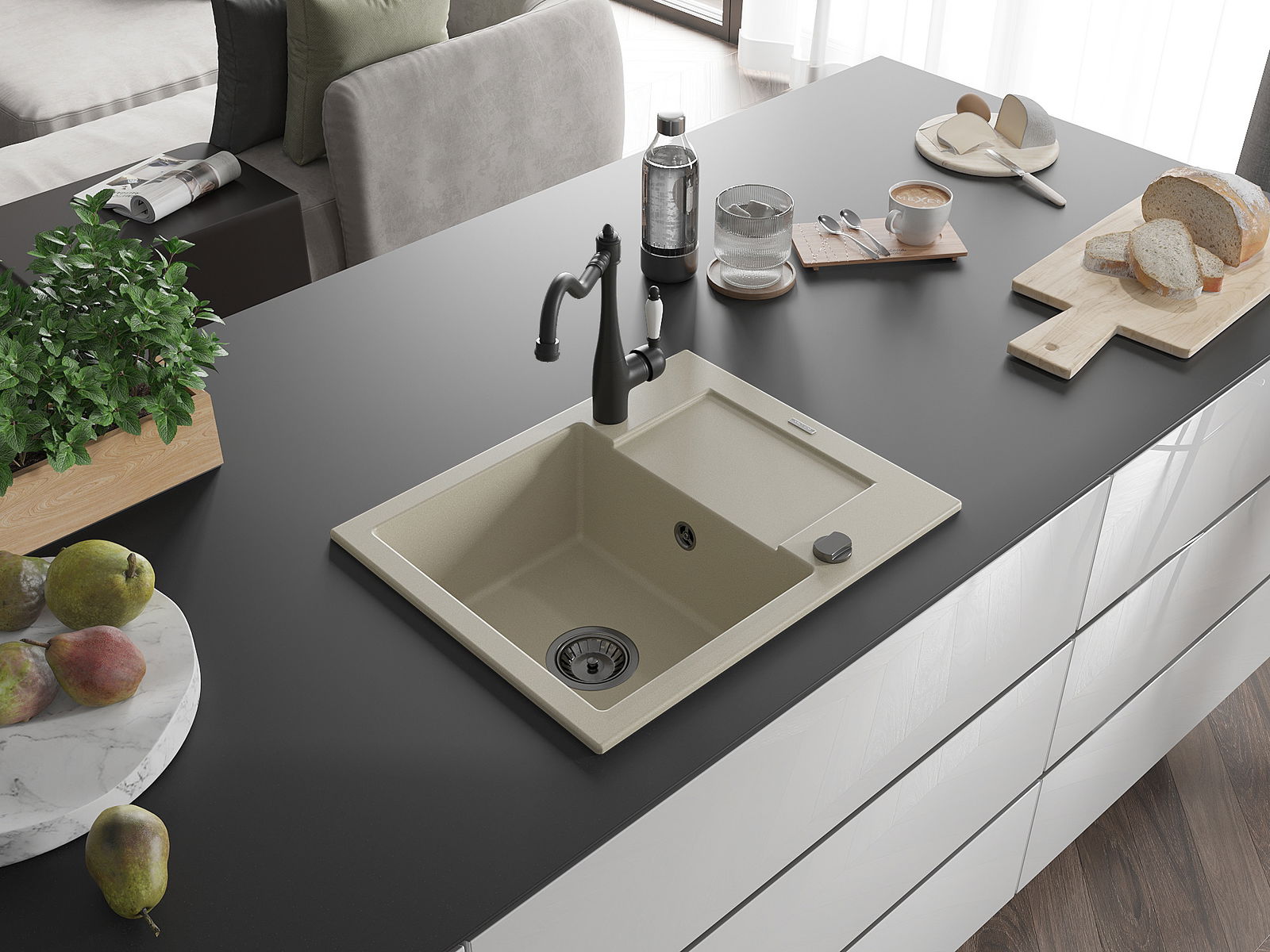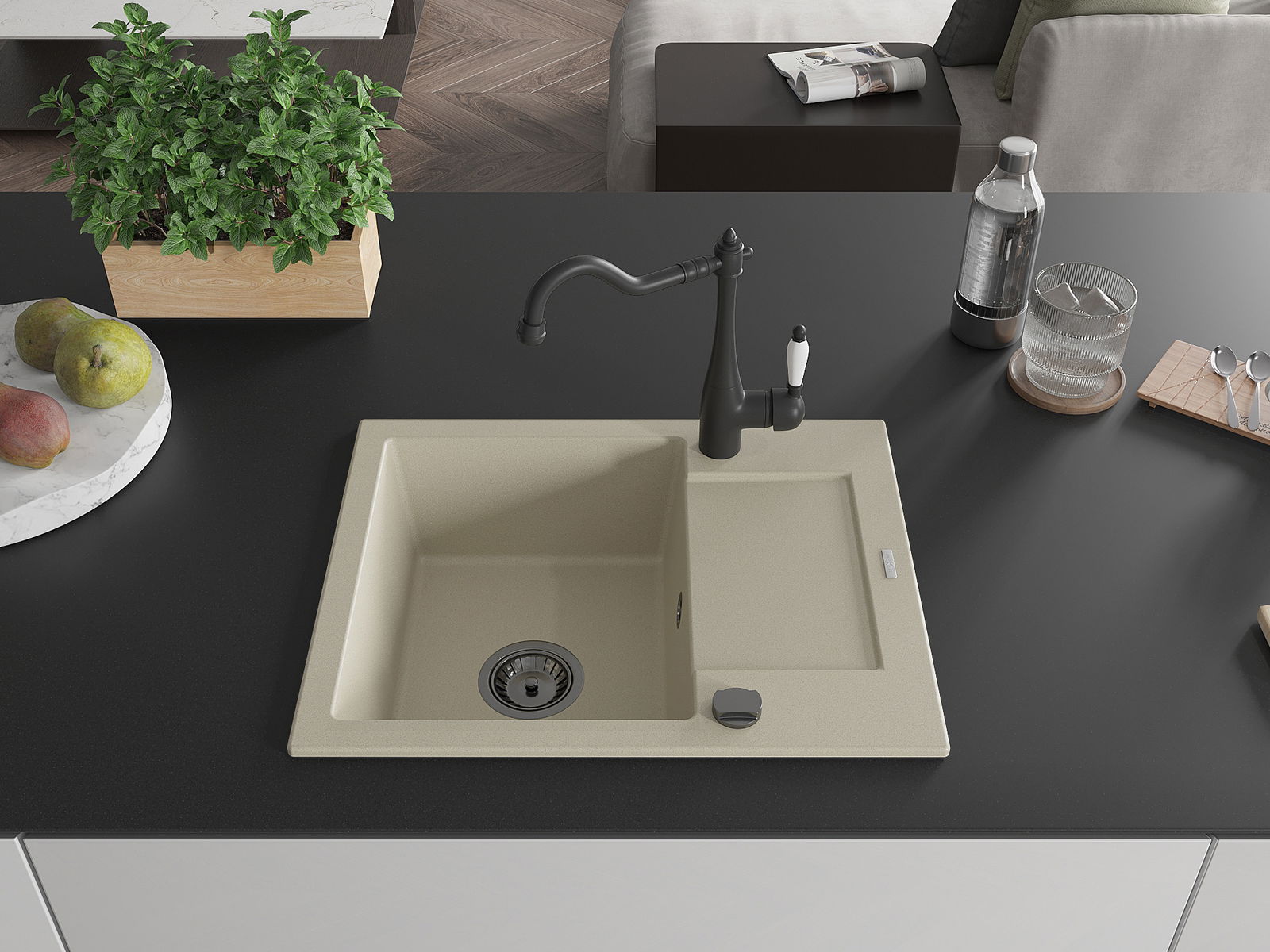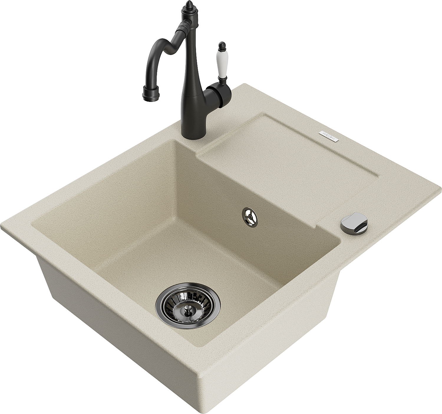 Mexen Enzo chiuvetă de granit cu 1 compartiment cu scurgător și baterie de bucătărie Carla, bej - 6506-69-670700-70