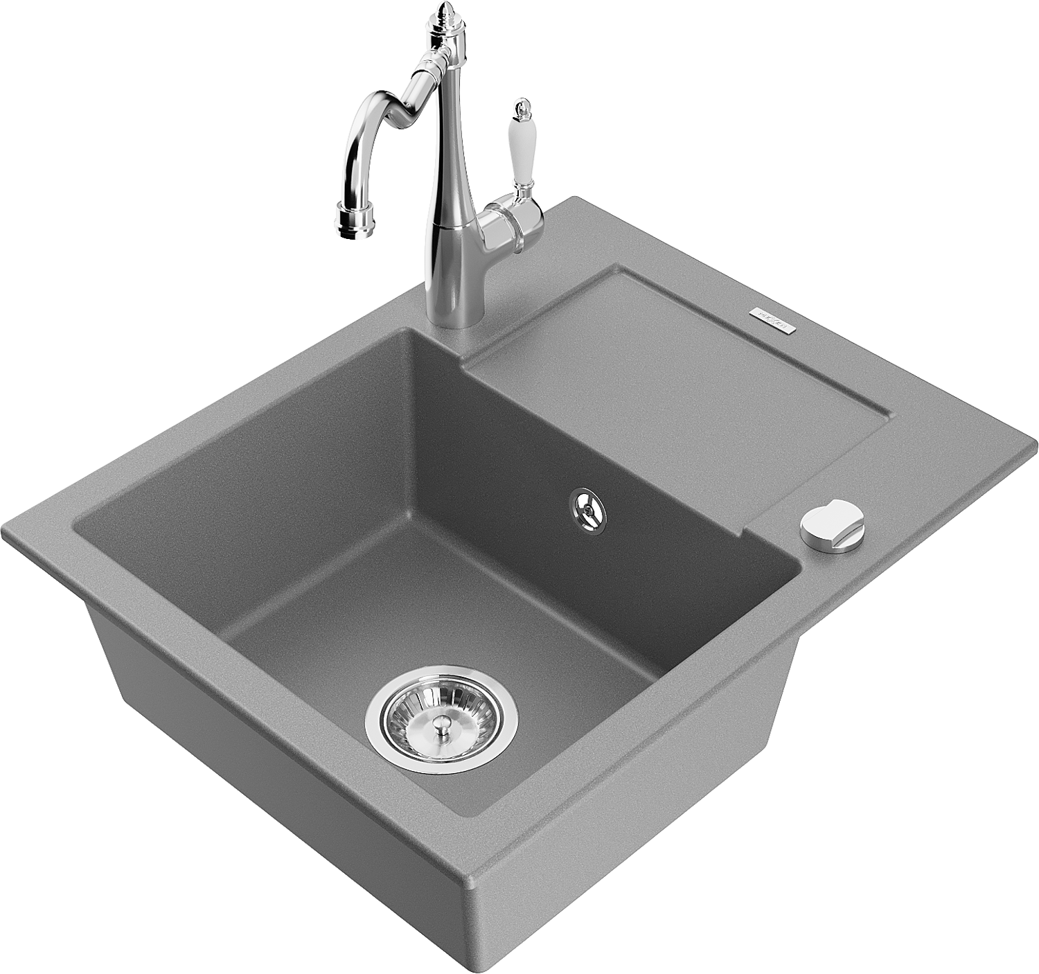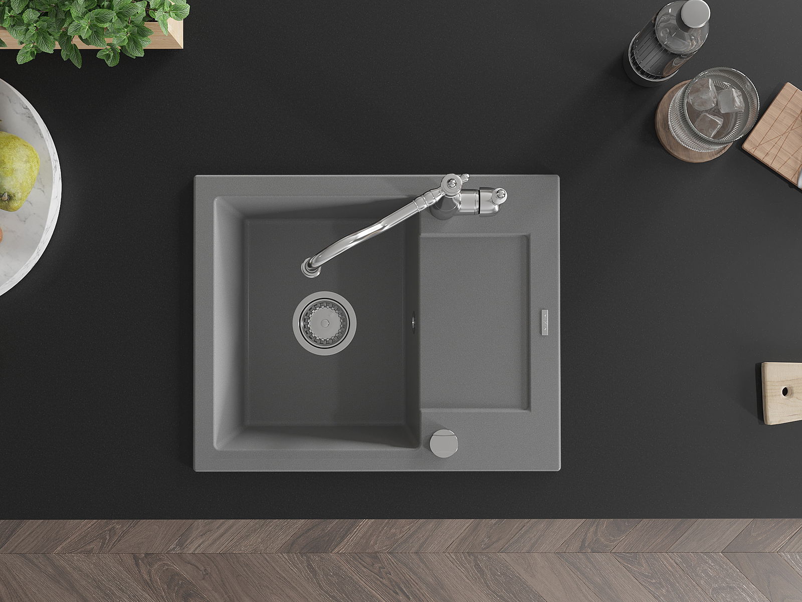 Mexen Enzo chiuvetă din granit cu 1 cuvă și scurgător și baterie de bucătărie Carla, gri - 6506-71-670700-00