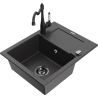 Mexen Enzo chiuvetă granit cu 1 compartiment și scurgător și robinet de bucătărie Carla, negru/argintiu metalic