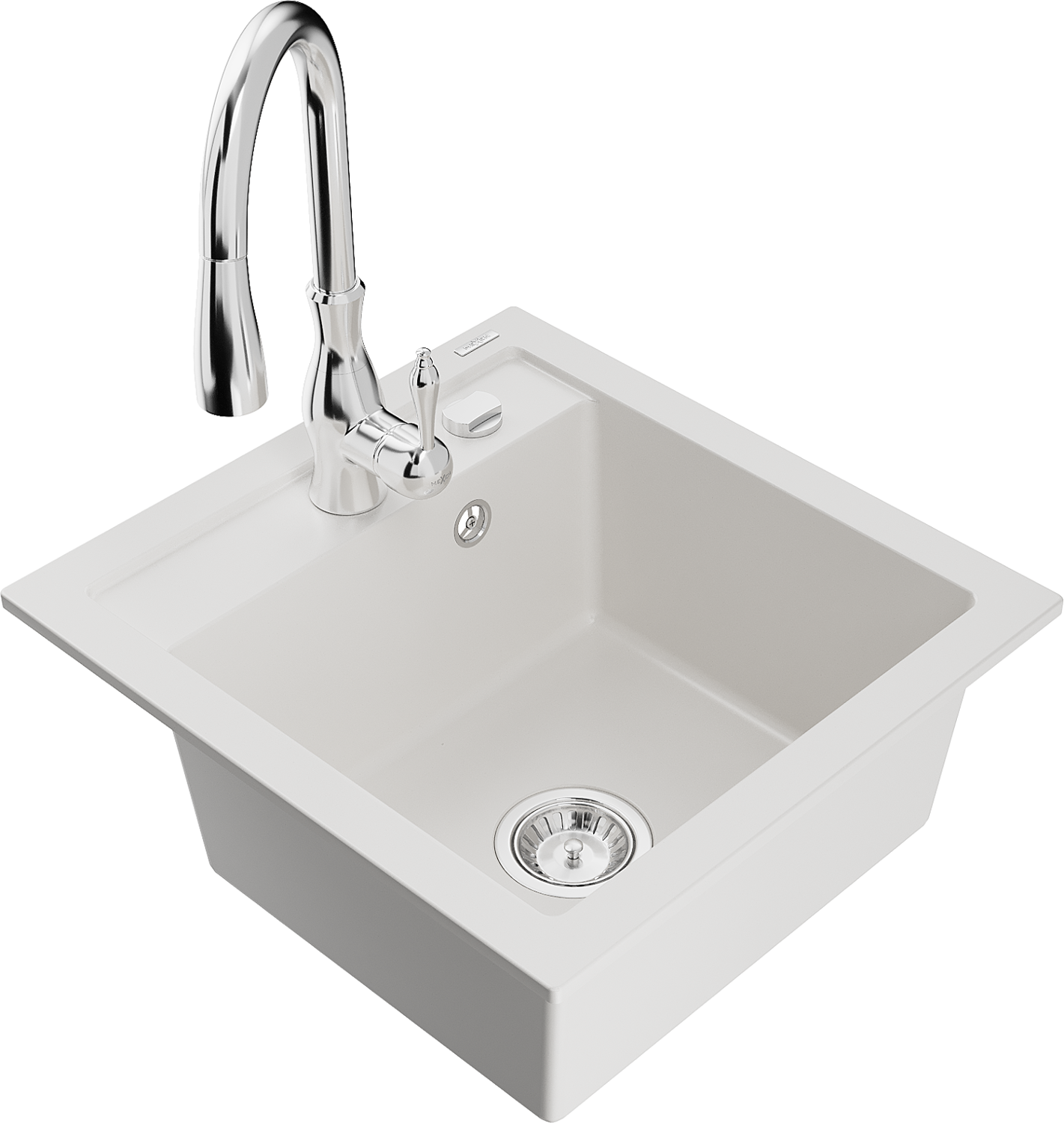 Suprafața chiuvetei este rezistentă la pete și decolorarea, datorită căreia este ușor de curățat și își păstrează culoarea mult timp. Estetică și practic completarea fiecărei bucătării.