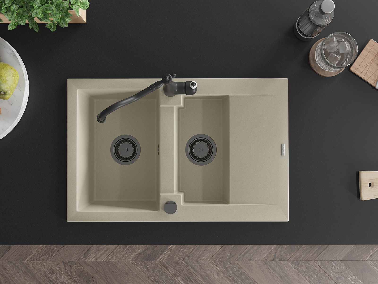 Suprafața chiuvetei este rezistentă la pete și decolorarea, datorită căreia este ușor de curățat și își păstrează culoarea mult timp. Estetică și practic completarea fiecărei bucătării.