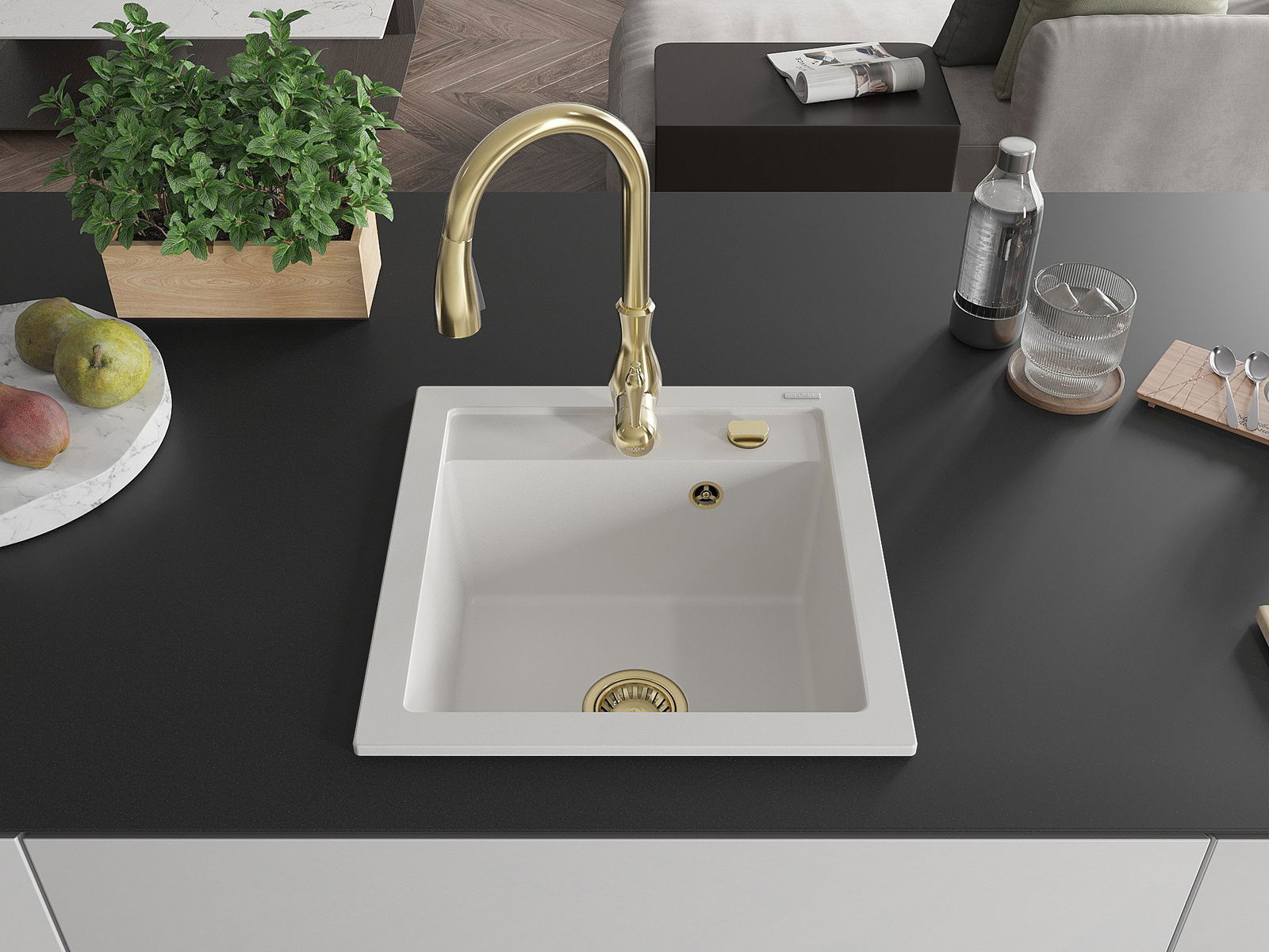 Suprafața chiuvetei este rezistentă la pete și decolorarea, datorită căreia este ușor de curățat și își păstrează culoarea mult timp. Estetică și practic completarea fiecărei bucătării.