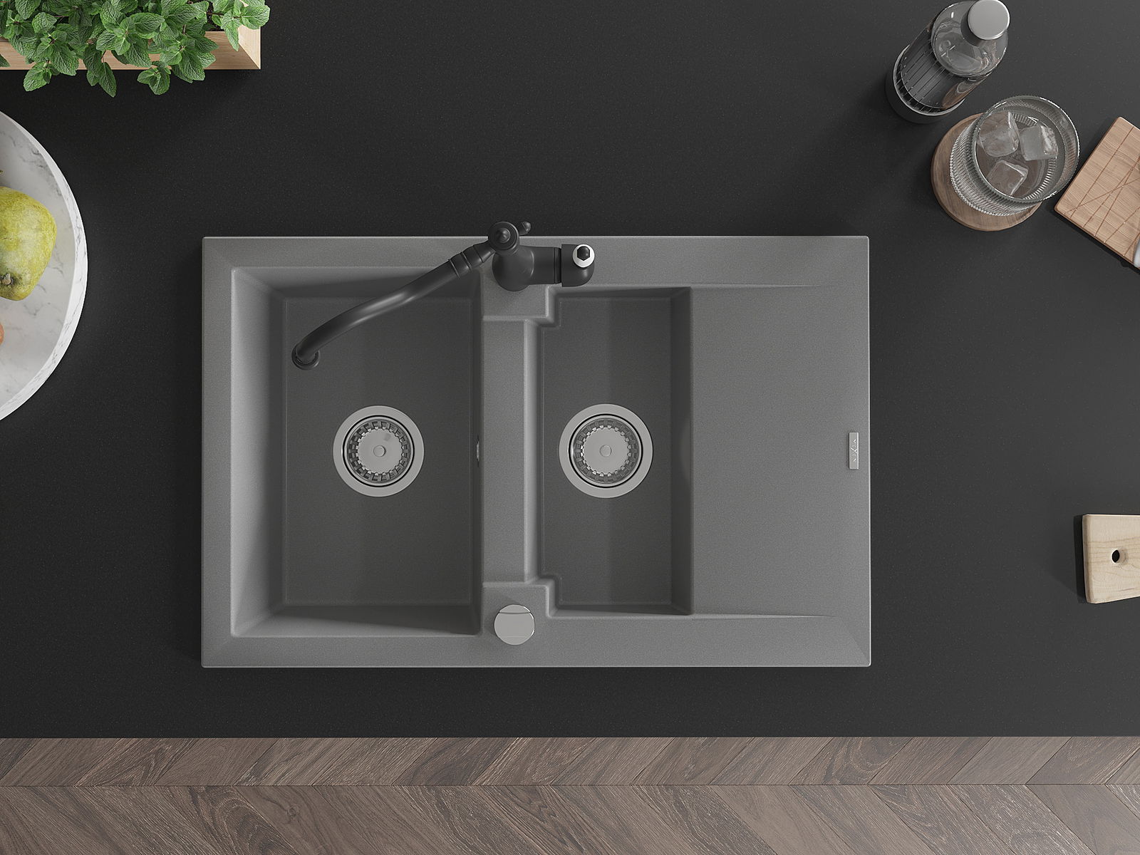 Datorită sistemului de montare universală, chiuveta este reversibilă, iar scurgerea poate fi montată pe blat la stânga sau la dreapta. În acest fel, puteți ajusta cu ușurință pagina la nevoile și condițiile dvs.