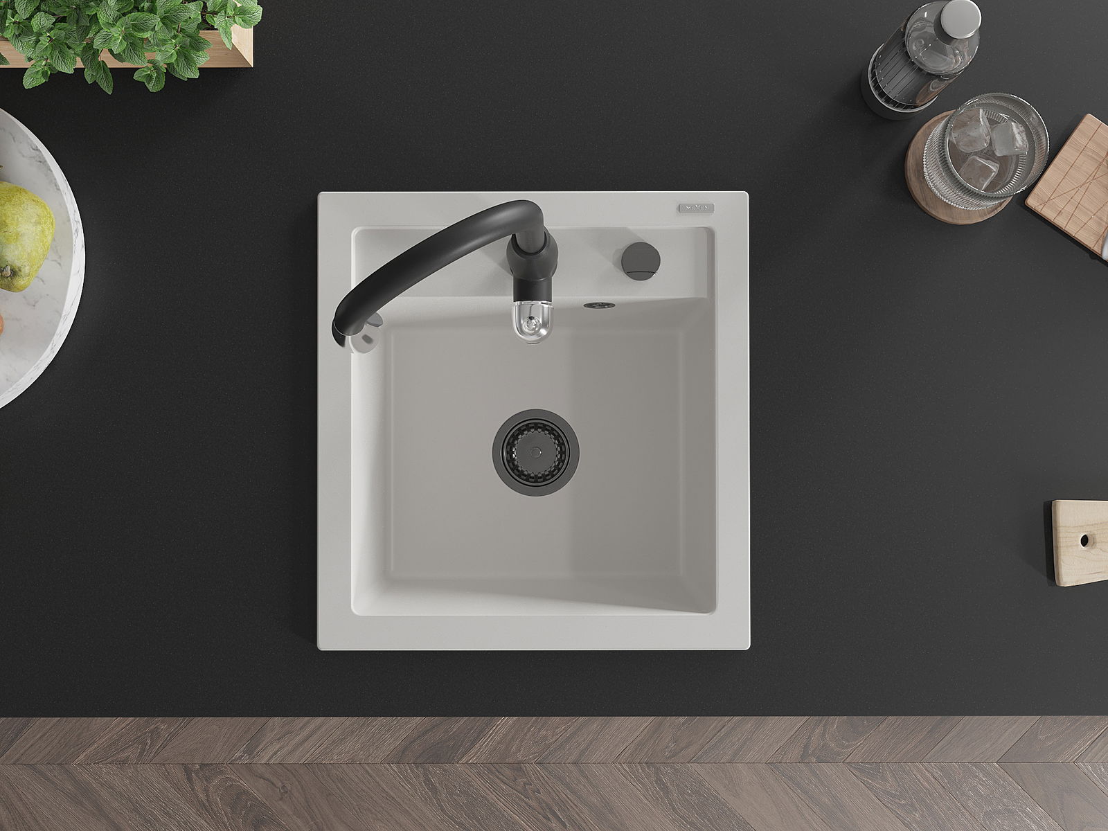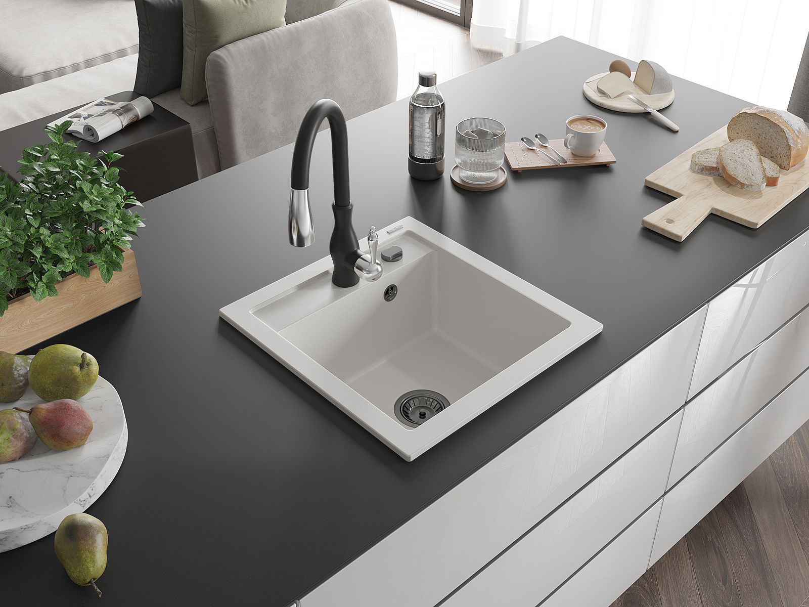 Suprafața chiuvetei este rezistentă la pete și decolorarea, datorită căreia este ușor de curățat și își păstrează culoarea mult timp. Estetică și practic completarea fiecărei bucătării.