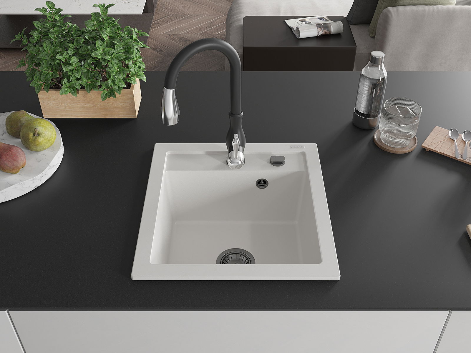 Chiuveta este confecționată din granit de înaltă calitate. Este un complement elegant și, mai ales, practic pentru fiecare bucătărie, indiferent de stilul său. Durabilitatea de înaltă calitate și granit asigură mulți ani de utilizare.