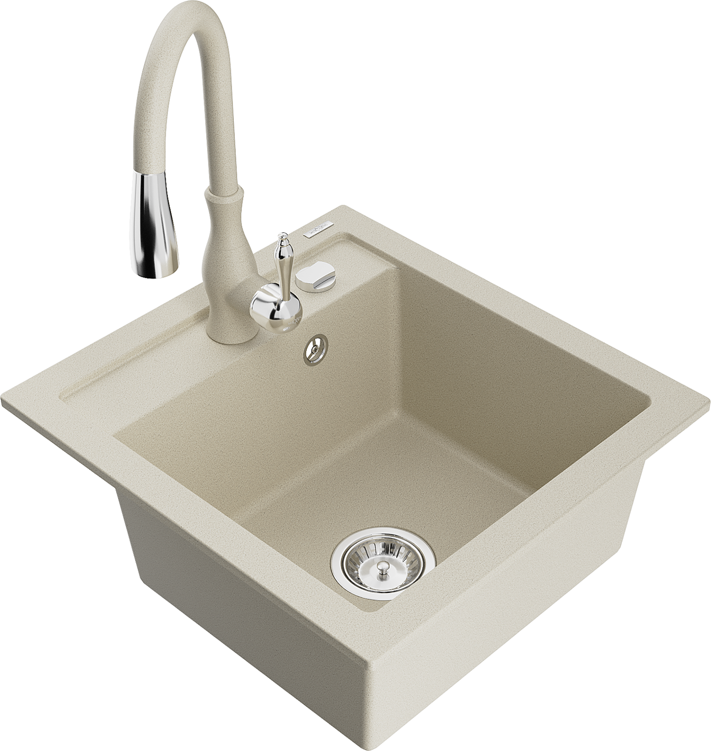 Mexen Vito chiuvetă din granit cu 1 compartiment și baterie de bucătărie Savita, bej - 6503-69-672601-69