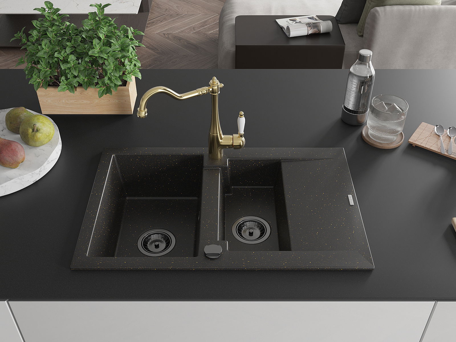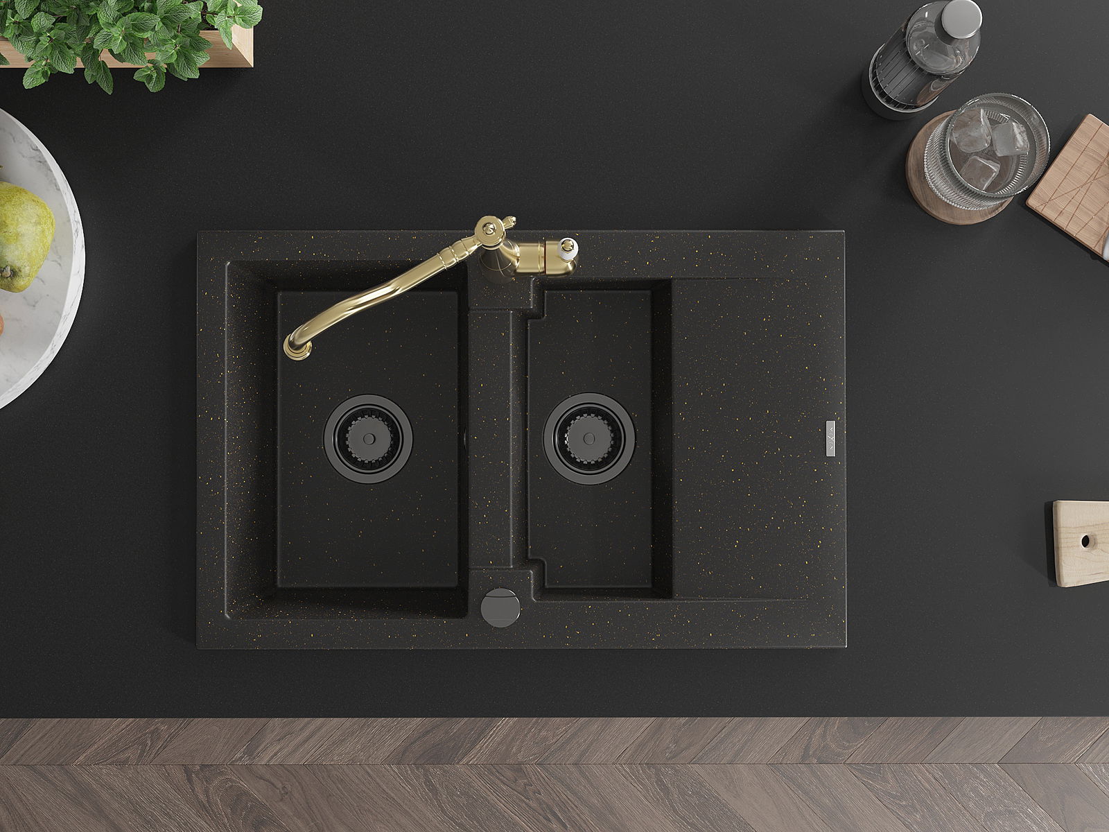 Mexen Gaspar chiuvetă de granit cu 1,5 compartimente și scurgător și baterie de bucătărie Carla negru/auriu metalic - 6507-75-6?
