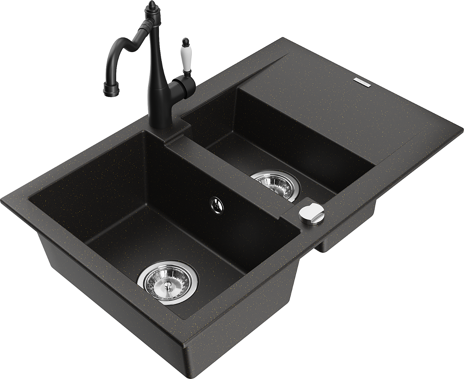 Mexen Gaspar chiuvetă de bucătărie din granit cu 1,5 compartimente, cu picurător și robinet de bucătărie Carla,