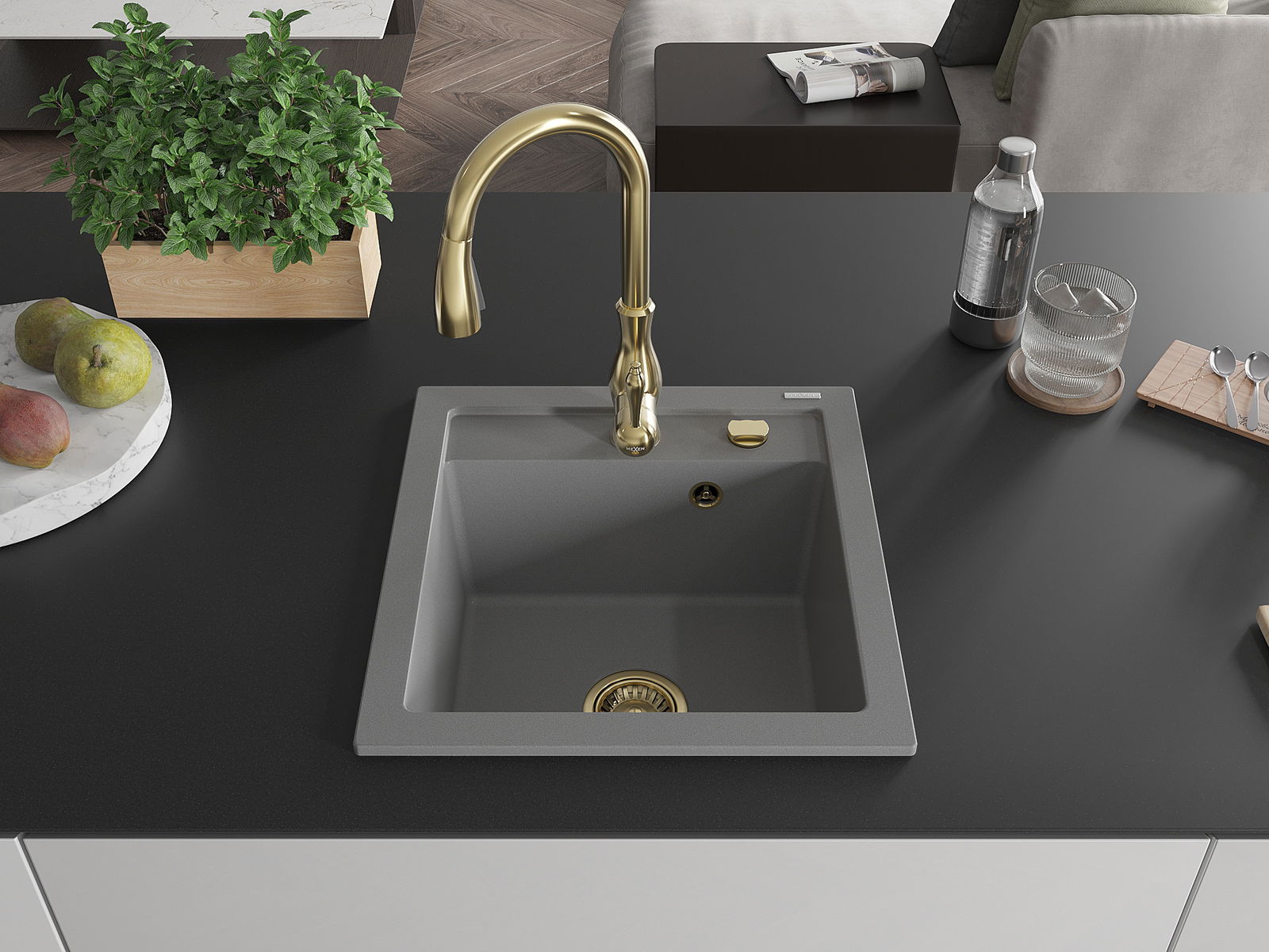 Suprafața chiuvetei este rezistentă la pete și decolorarea, datorită căreia este ușor de curățat și își păstrează culoarea mult timp. Estetică și practic completarea fiecărei bucătării.
