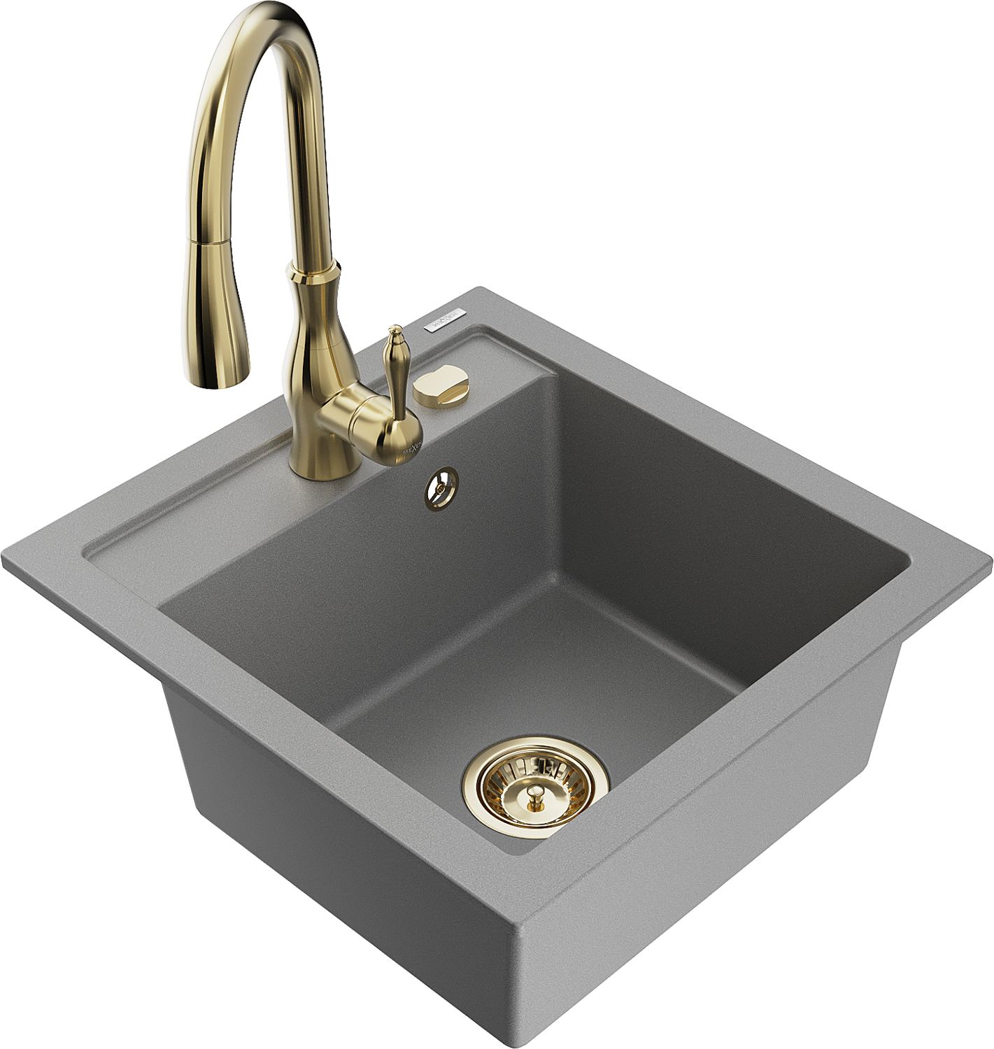 Mexen Vito chiuvetă granit 1-cameră cu baterie de bucătărie Savita, gri - 6503-71-672601-50