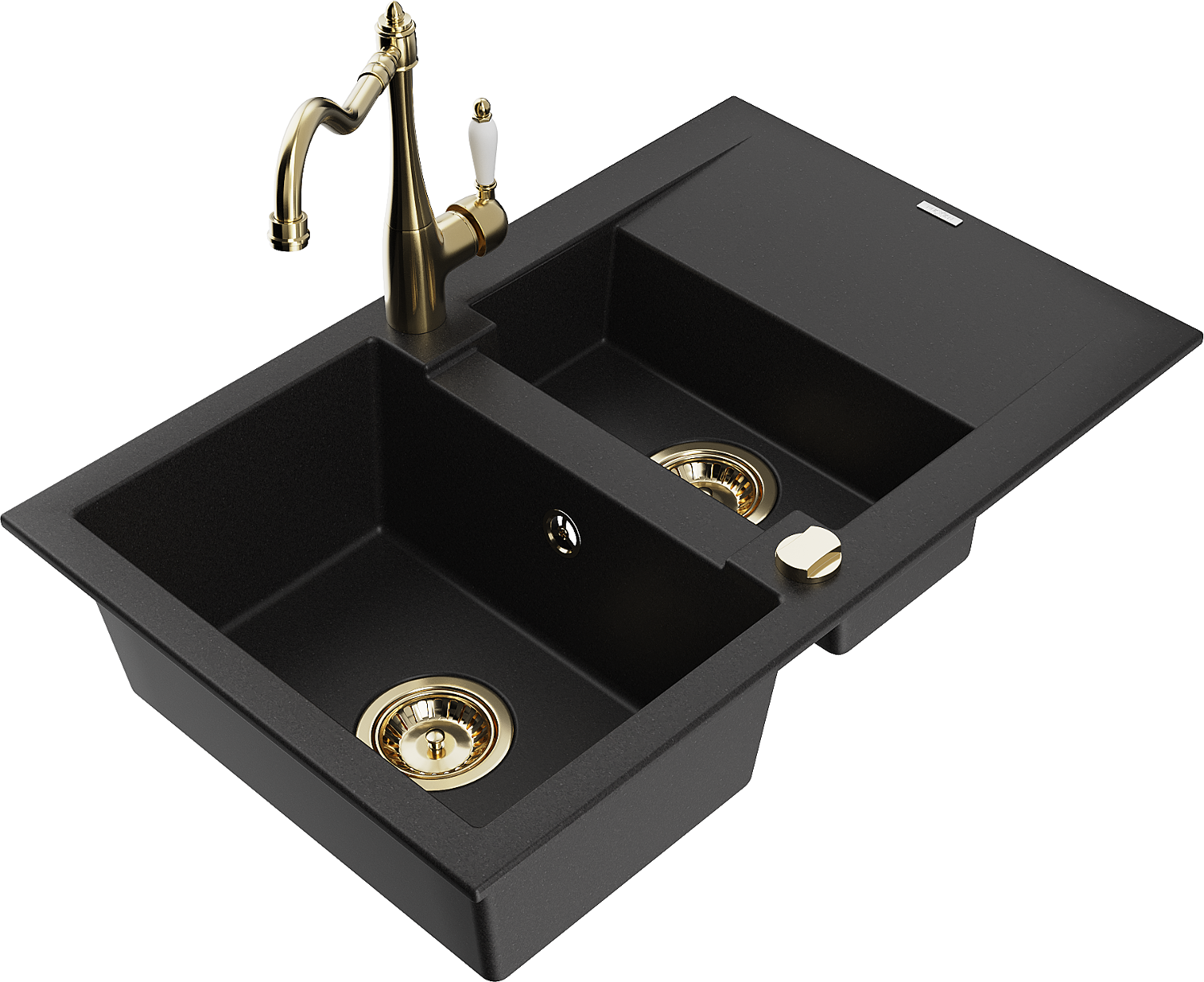 Mexen Gaspar chiuvetă din granit cu 1,5 camere cu scurgător și robinet de bucătărie Carla, negru - 6507-77-670700-50