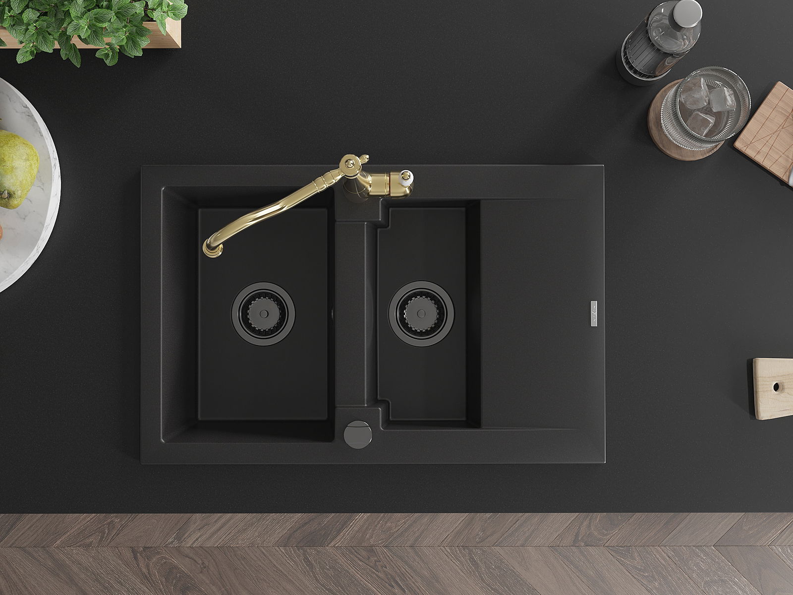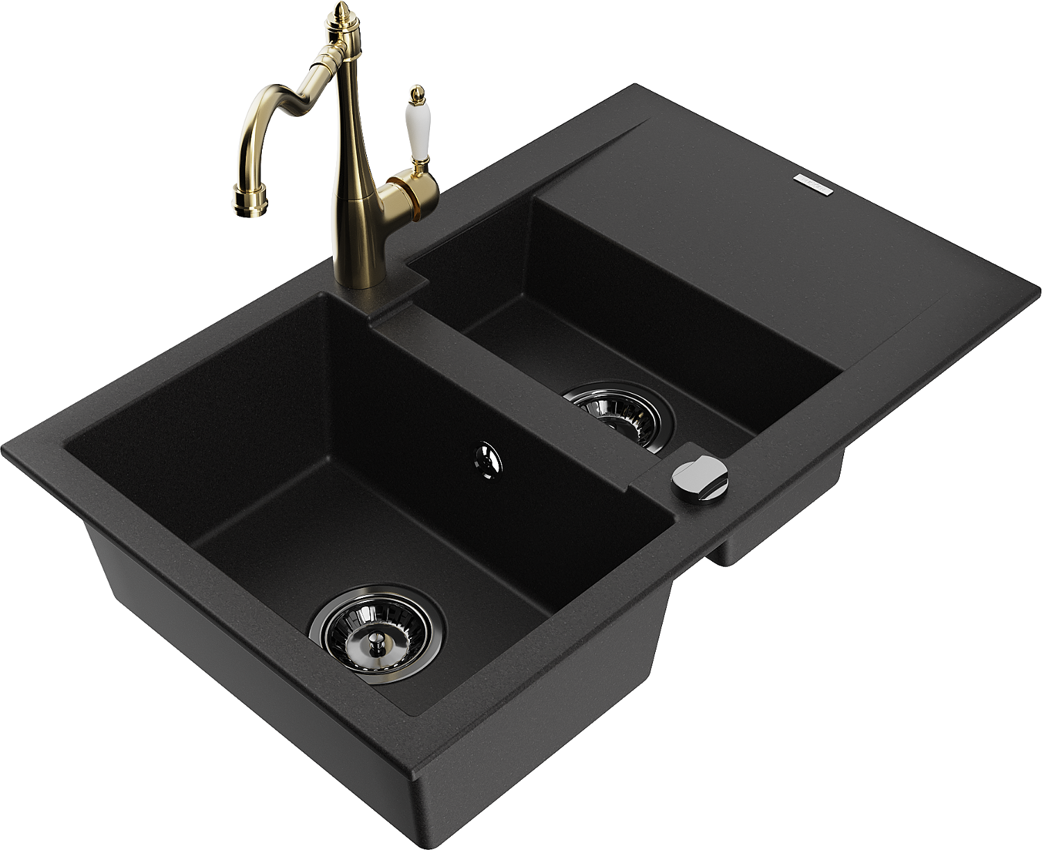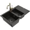Mexen Gaspar chiuvetă de granit 1,5 camere cu scurgător și baterie de bucătărie Carla, negru - 6507-77-670700-50-B