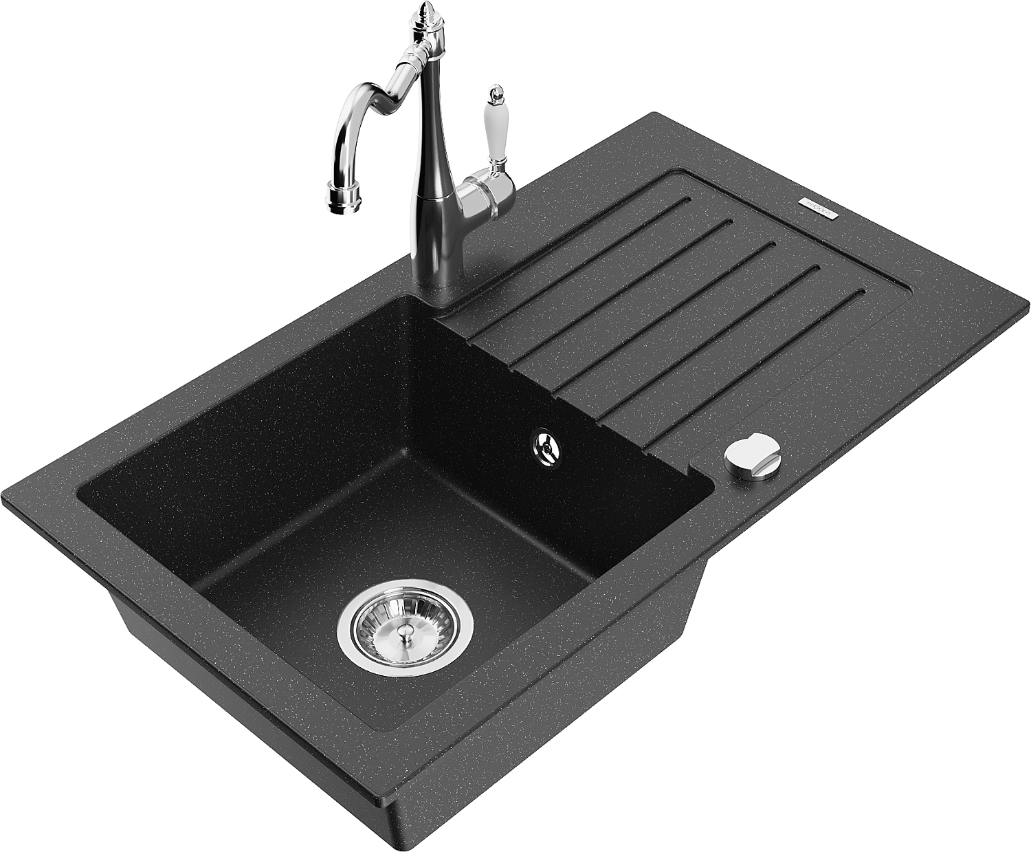 Mexen Pablo chiuvetă granit 1-cameră cu scurgător și baterie bucătărie Carlo, negru/argintiu metalic - 6510-73-670700-00