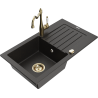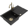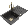 Mexen Pablo chiuvetă din granit cu 1 compartiment cu scurgător și baterie de bucătărie Carla, negru/metal argintiu