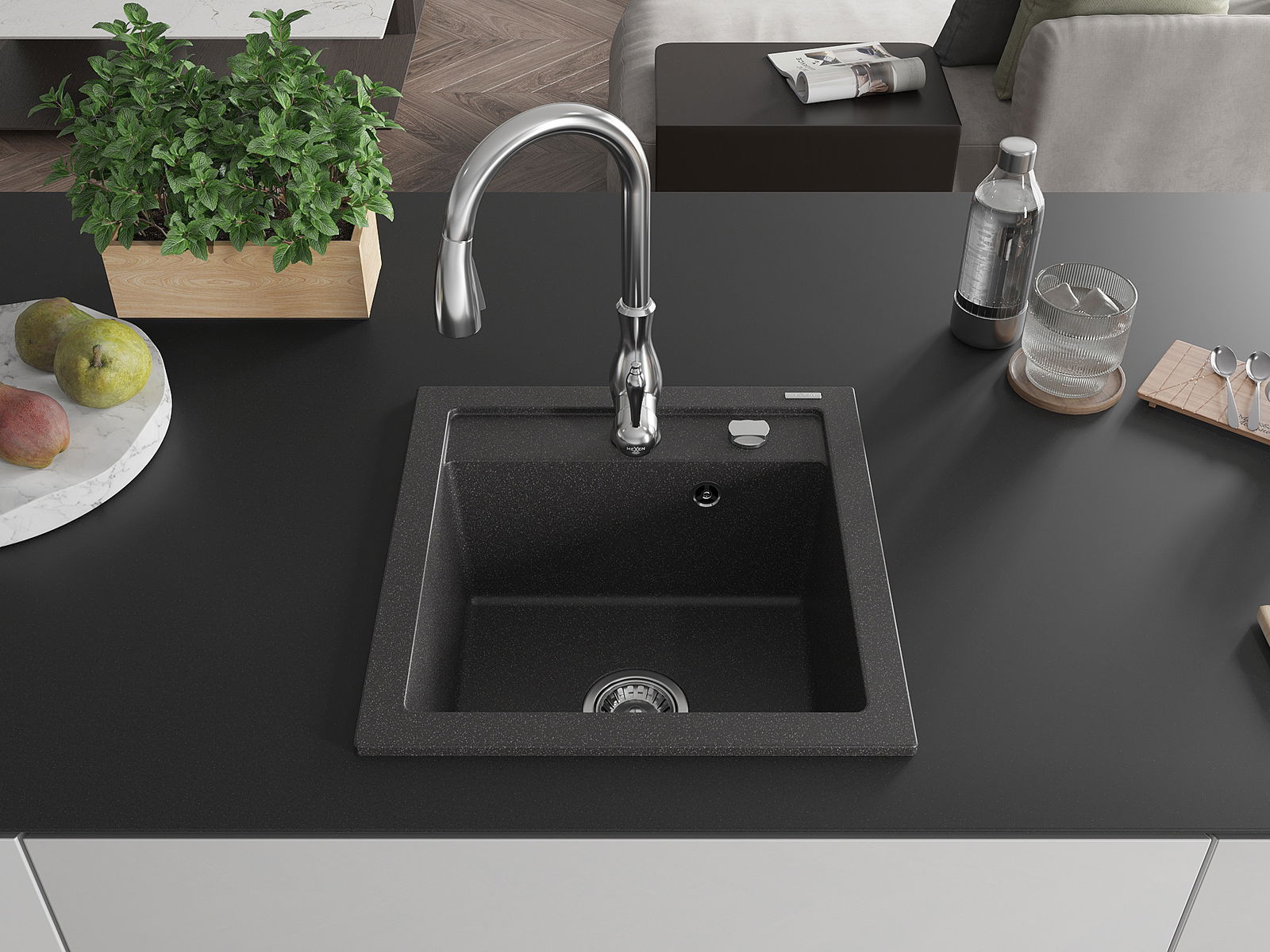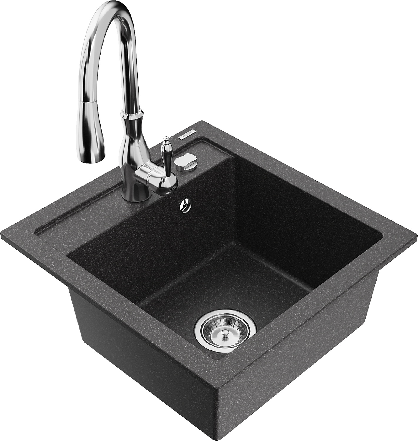 Mexen Vito chiuvetă de granit cu o singură cuvă cu baterie de bucătărie Savita, negru cu pete - 6503-76-672601-00