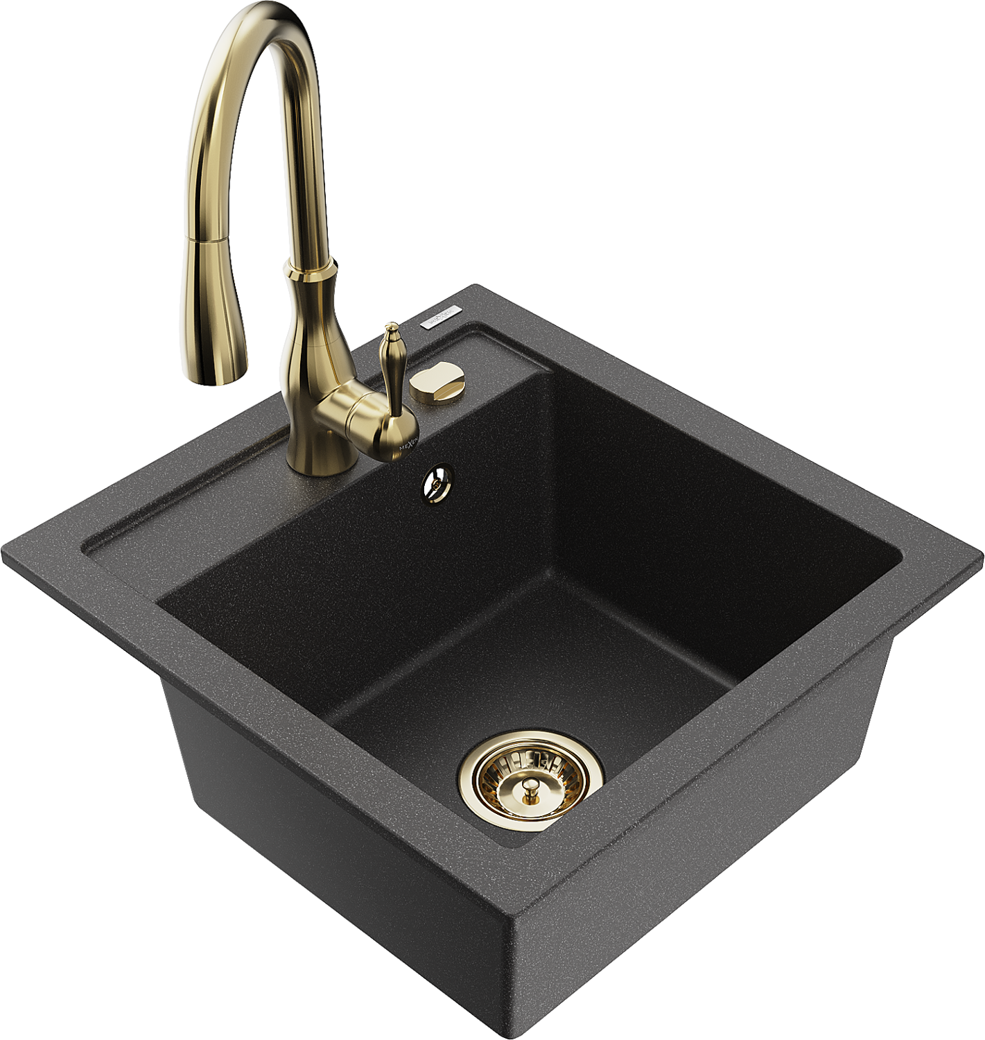 Mexen Vito chiuvetă de granit cu 1 compartiment și baterie de bucătărie Savita, negru pătat - 6503-76-672601-50