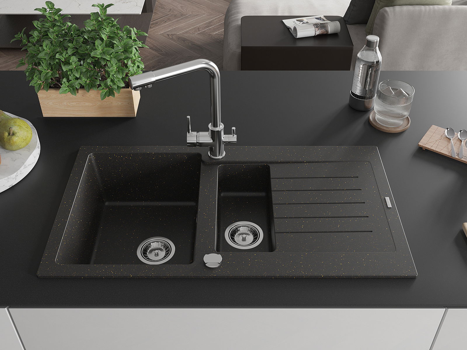 Chiuveta a fost realizată din granit de înaltă calitate. Reprezintă un complement elegant și, mai presus de toate, practic pentru orice bucătărie, indiferent de stilul acesteia. Calitatea înaltă și durabilitatea granitului asigură o utilizare de lungă durată.