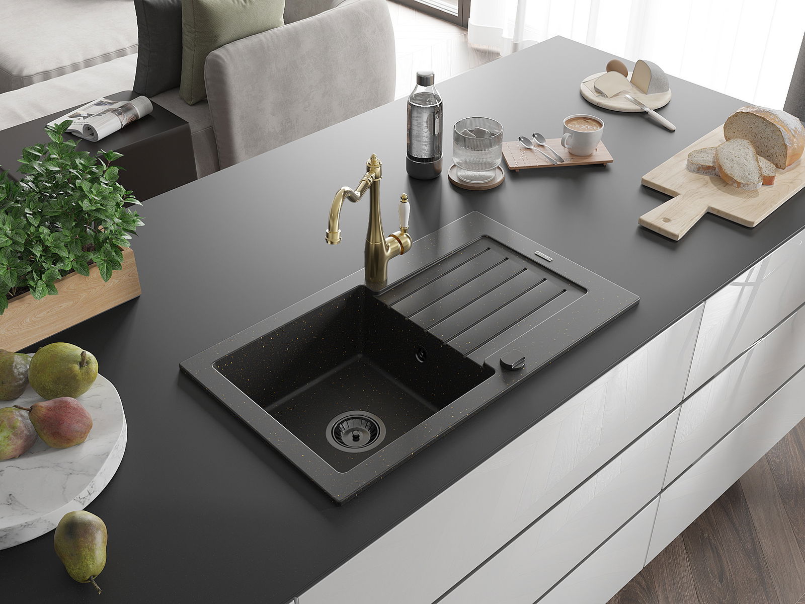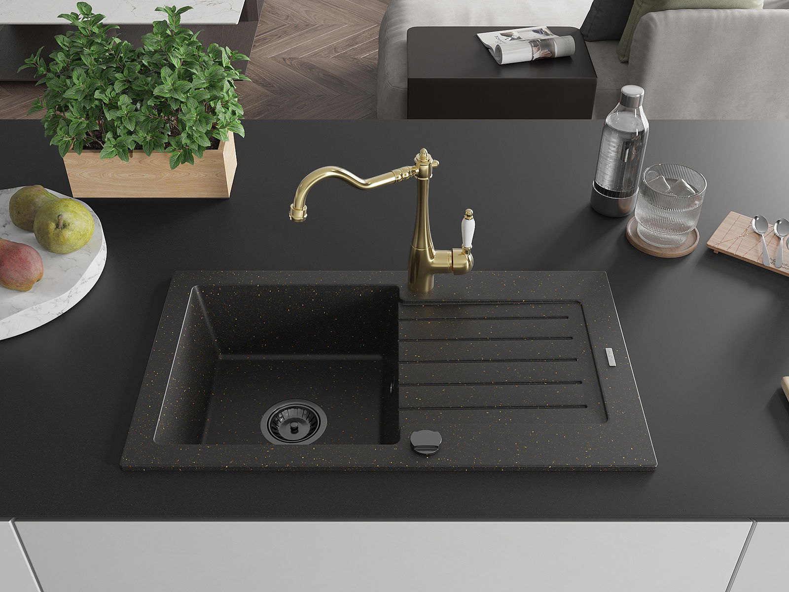 Chiuveta a fost realizată din granit de înaltă calitate. Reprezintă un complement elegant și, mai presus de toate, practic pentru orice bucătărie, indiferent de stilul acesteia. Calitatea înaltă și durabilitatea granitului asigură o utilizare de lungă durată.