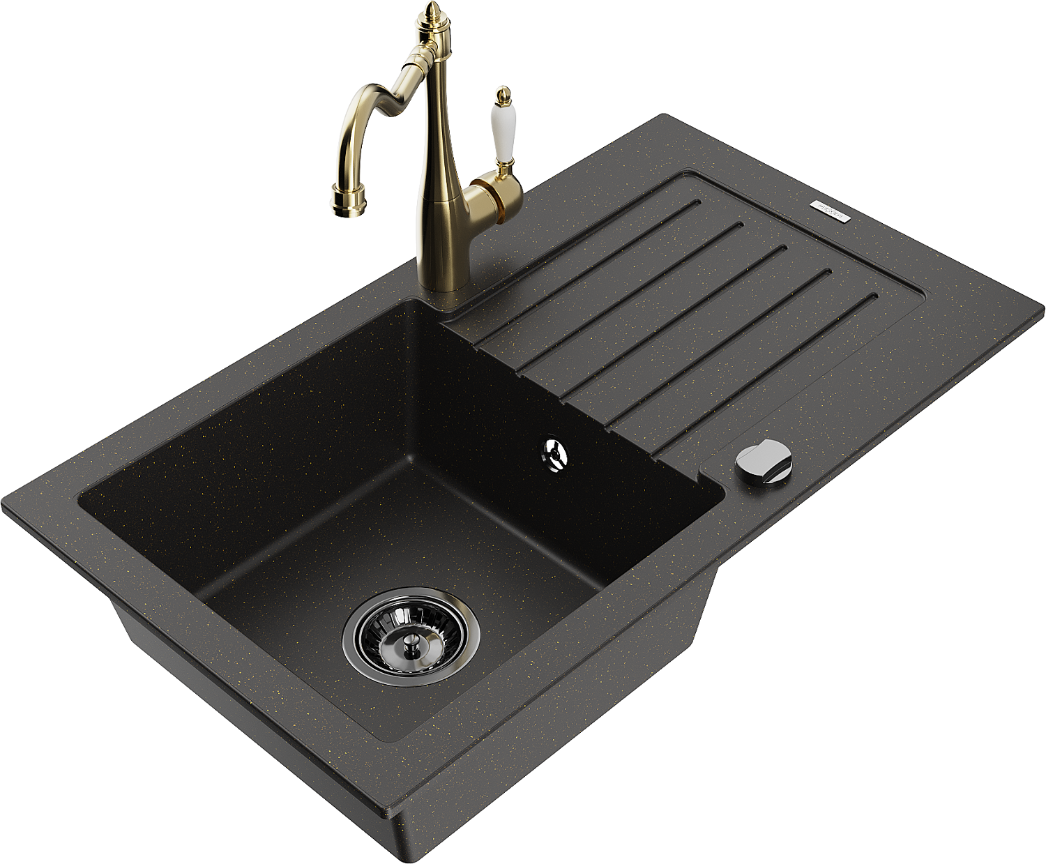Mexen Pablo chiuvetă de granit cu 1 compartiment, picurător și baterie de bucătărie Carla, negru/auriu metalic