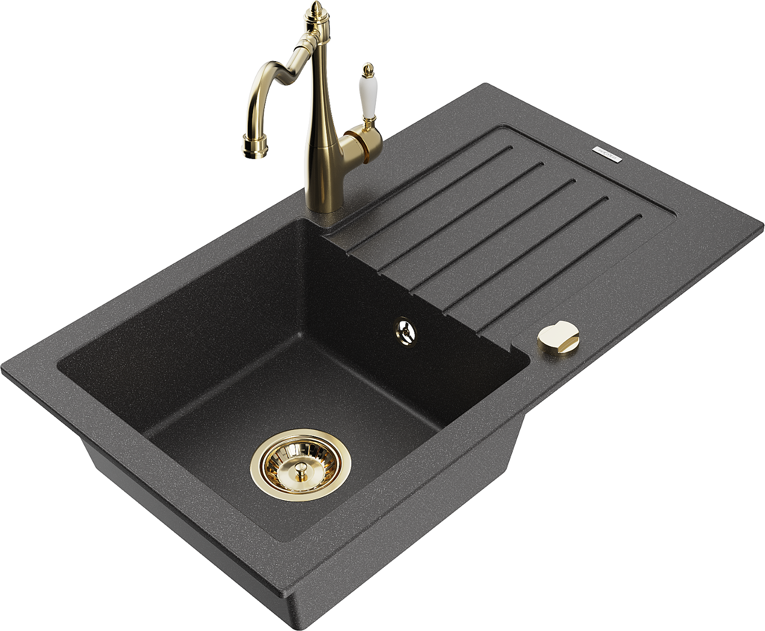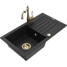 Mexen Pablo chiuvetă de bucătărie din granit cu o singură cuvă, cu scurgător și robinet de bucătărie Carla, negru cu