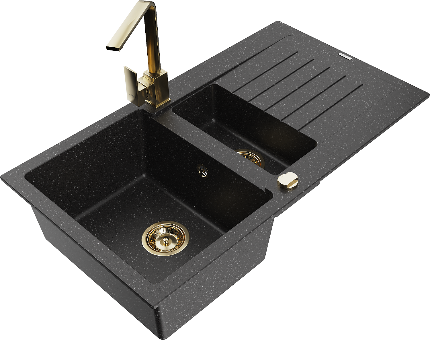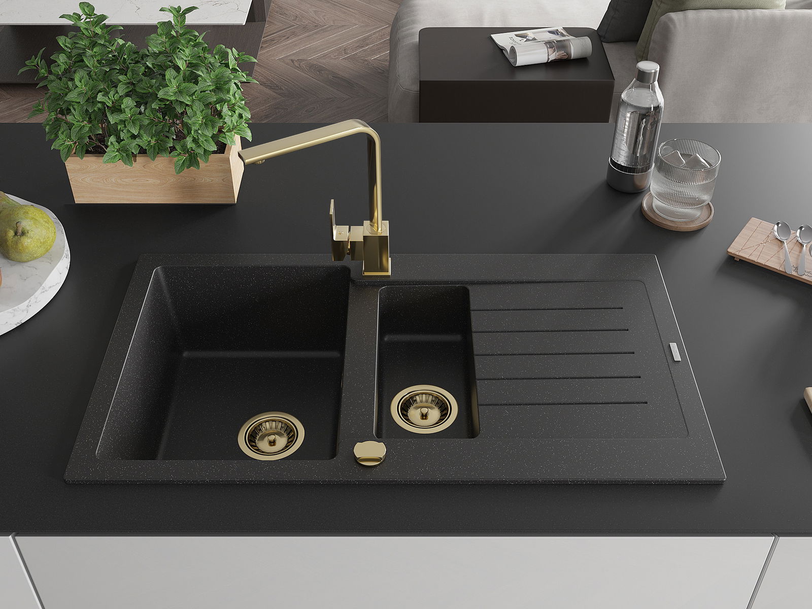 Mexen Matias chiuvetă de bucătărie din granit cu 1,5 compartimente, cu scurgător și baterie de bucătărie Rita,