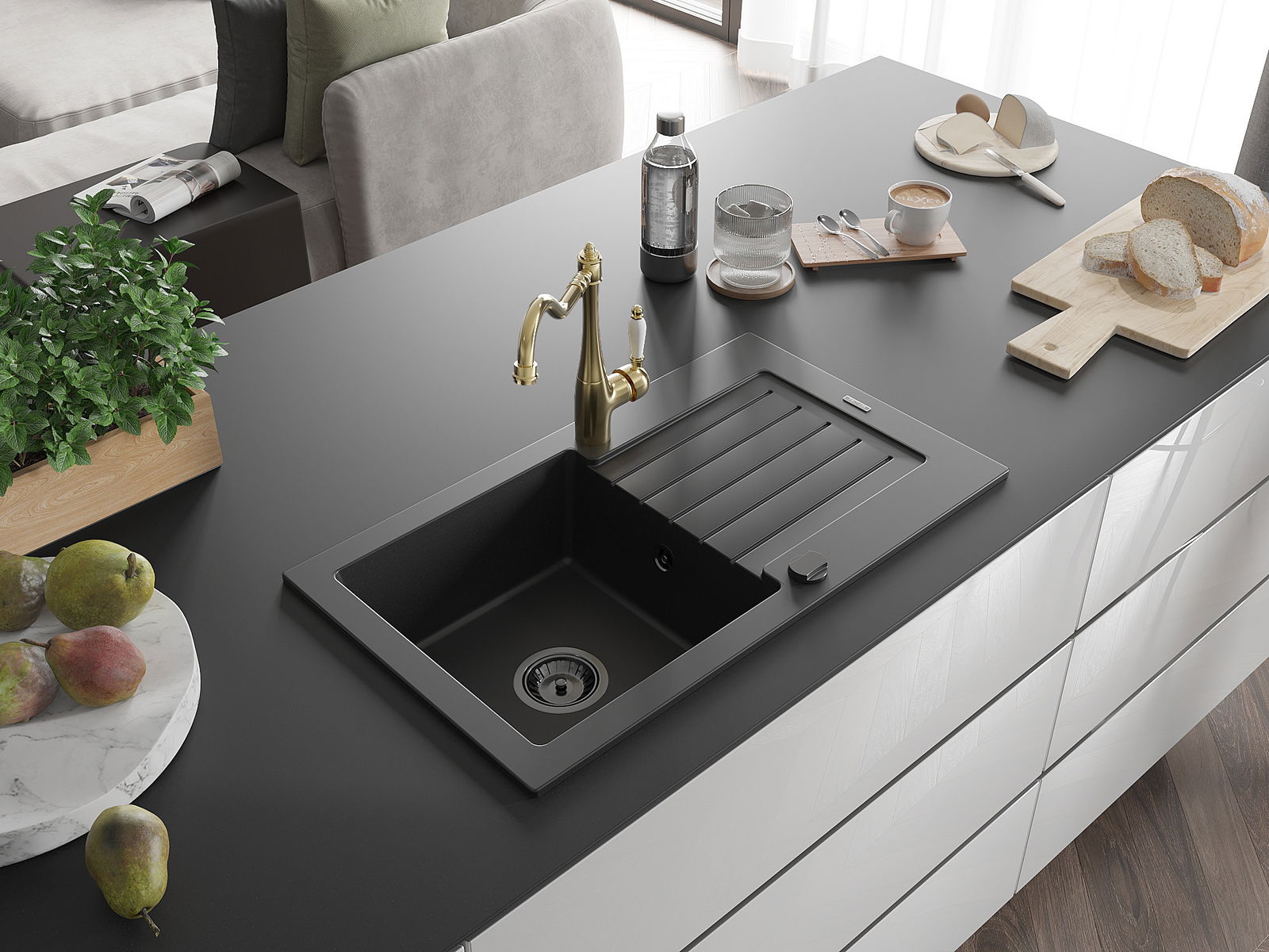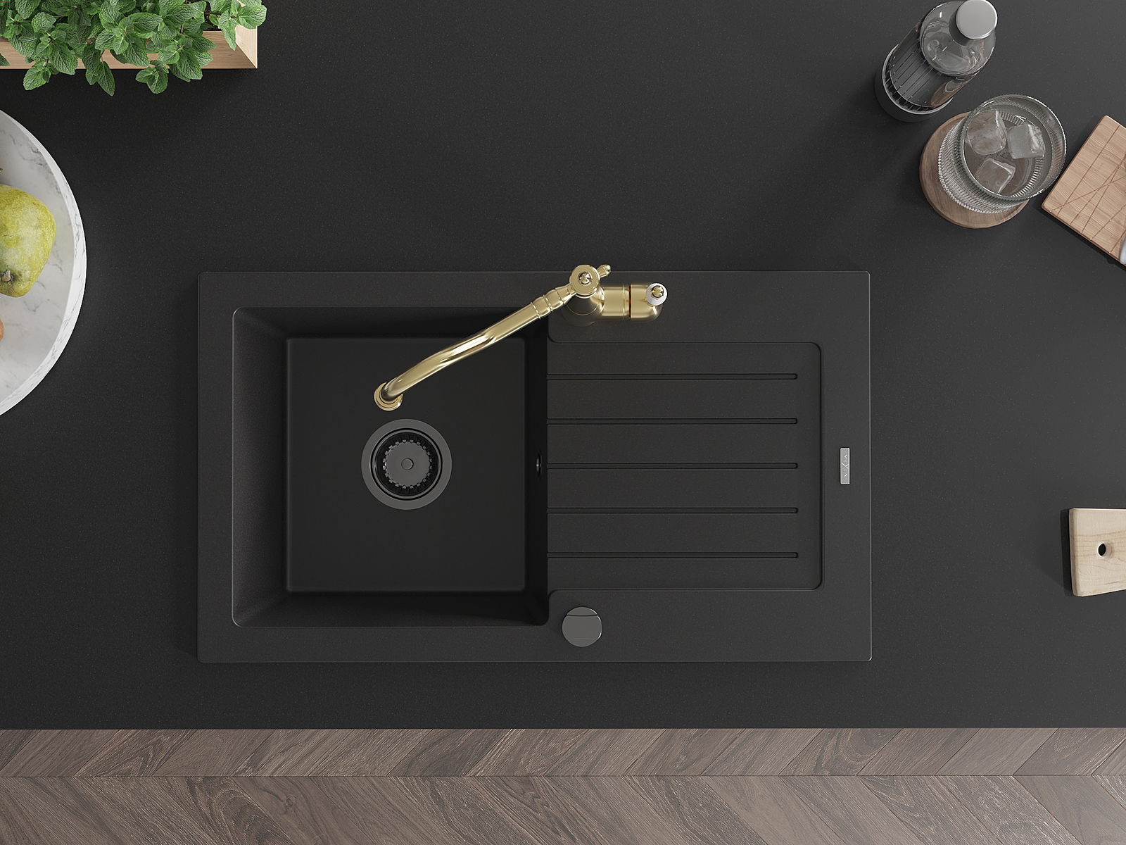 Suprafața chiuvetei este rezistentă la pete și decolorarea, datorită căreia este ușor de curățat și își păstrează culoarea mult timp. Estetică și practic completarea fiecărei bucătării.