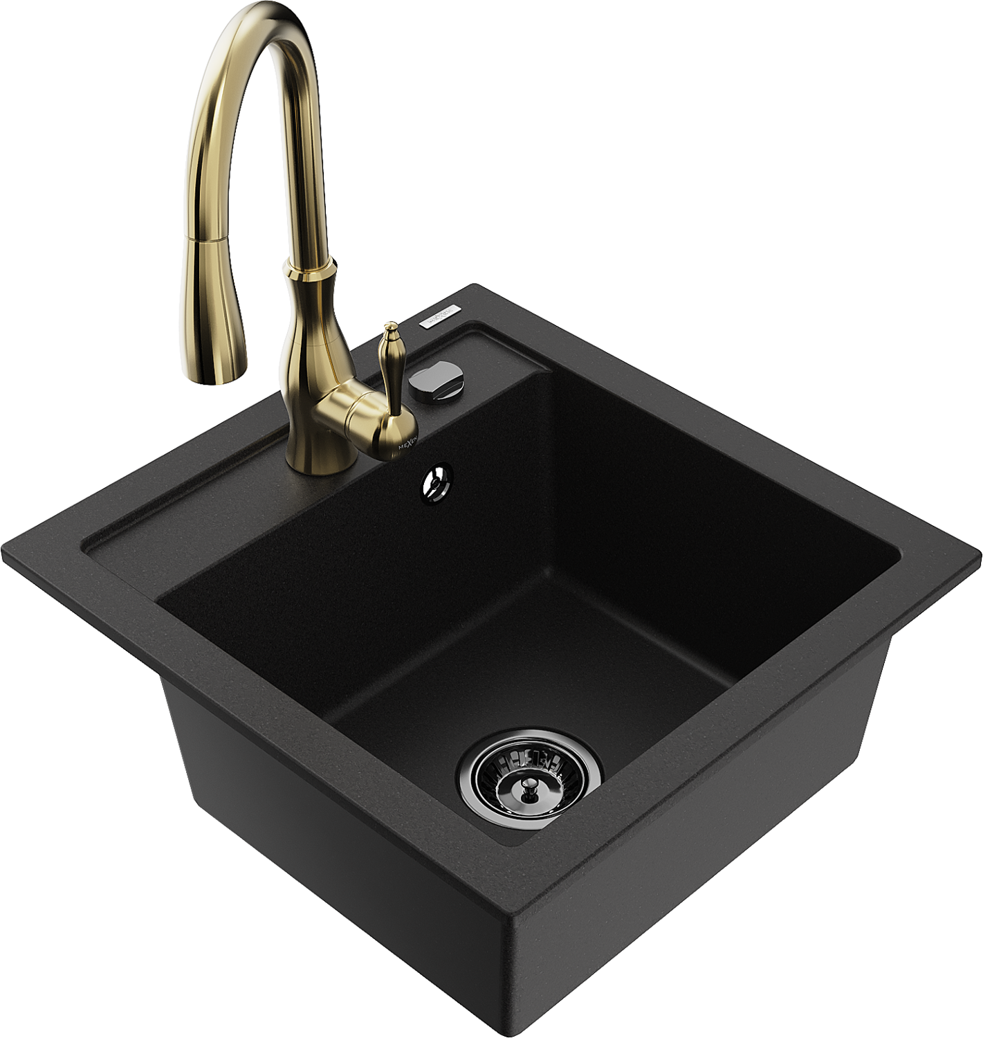 Mexen Vito chiuvetă de bucătărie din granit, cu 1 compartiment, cu baterie de bucătărie Savita, negru - 6503-77-672601-50-B