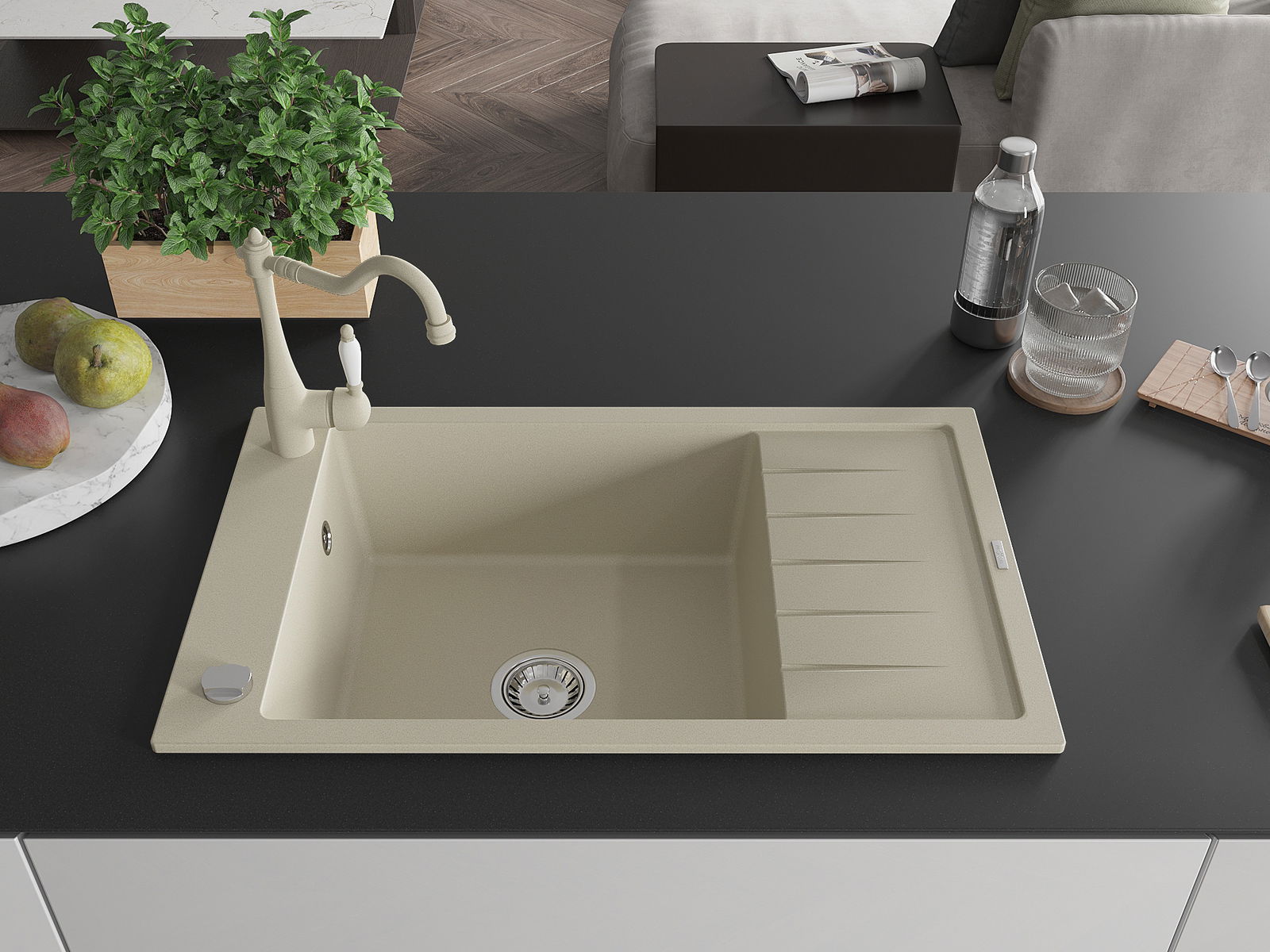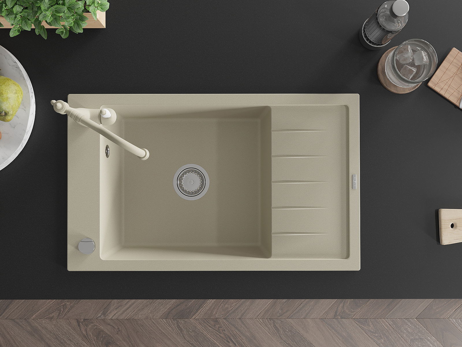 Mexen Elias chiuvetă de granit cu 1 compartiment și scurgător și baterie de bucătărie Carla, bej - 6511-69-670700-69