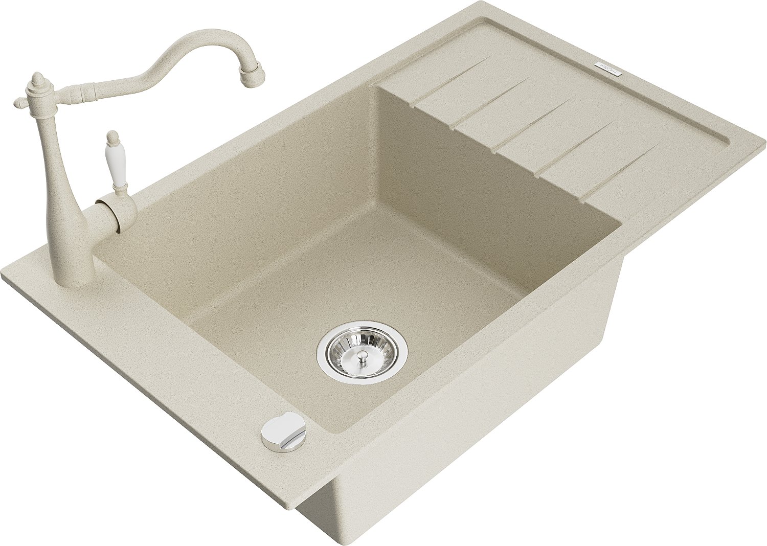 Suprafața chiuvetei este rezistentă la pete și decolorarea, datorită căreia este ușor de curățat și își păstrează culoarea mult timp. Estetică și practic completarea fiecărei bucătării.