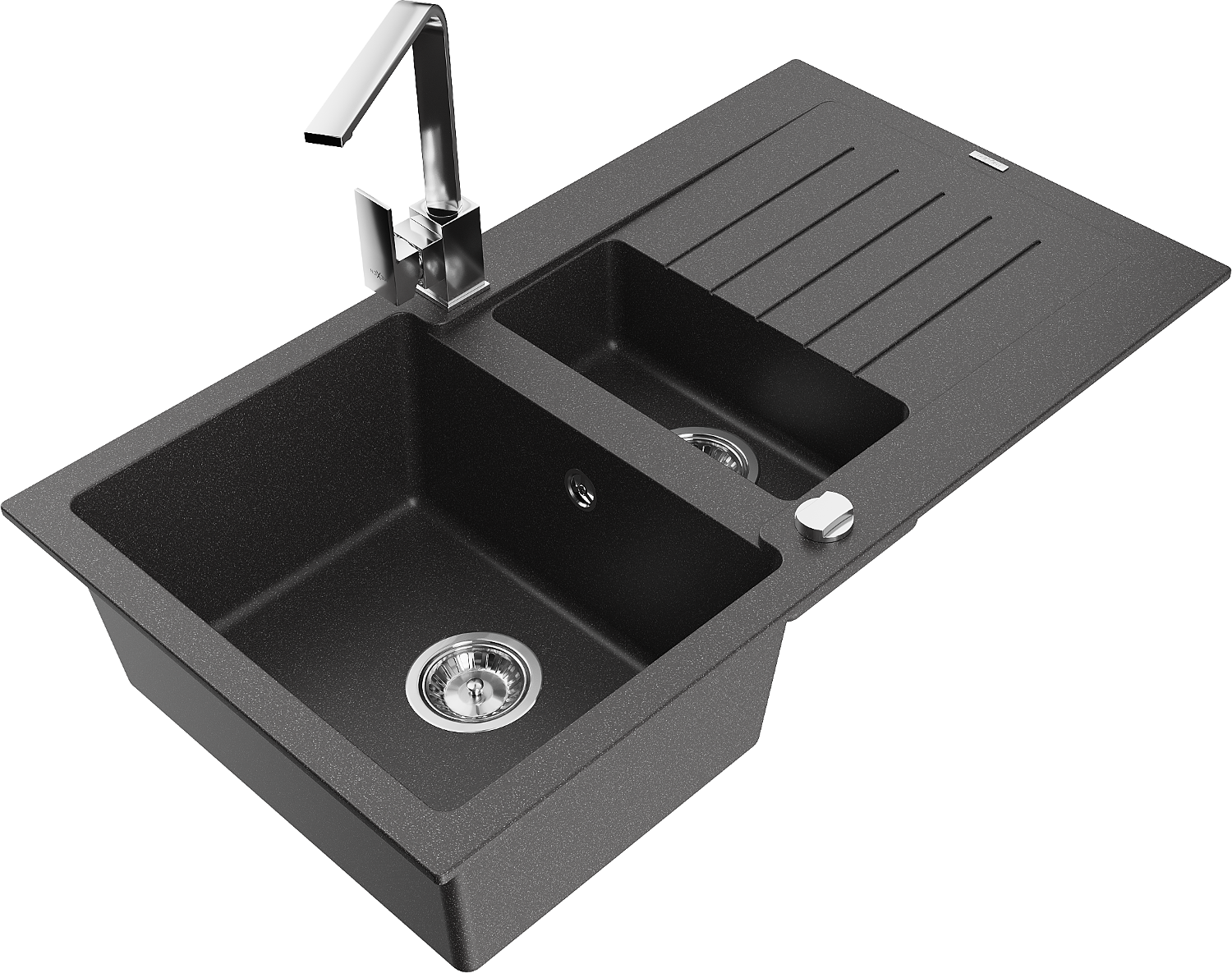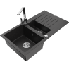 Mexen Matias chiuvetă din granit cu 1,5 cuve cu scurgător și baterie de bucătărie Rita, negru pătat - 6502-76-670300-00