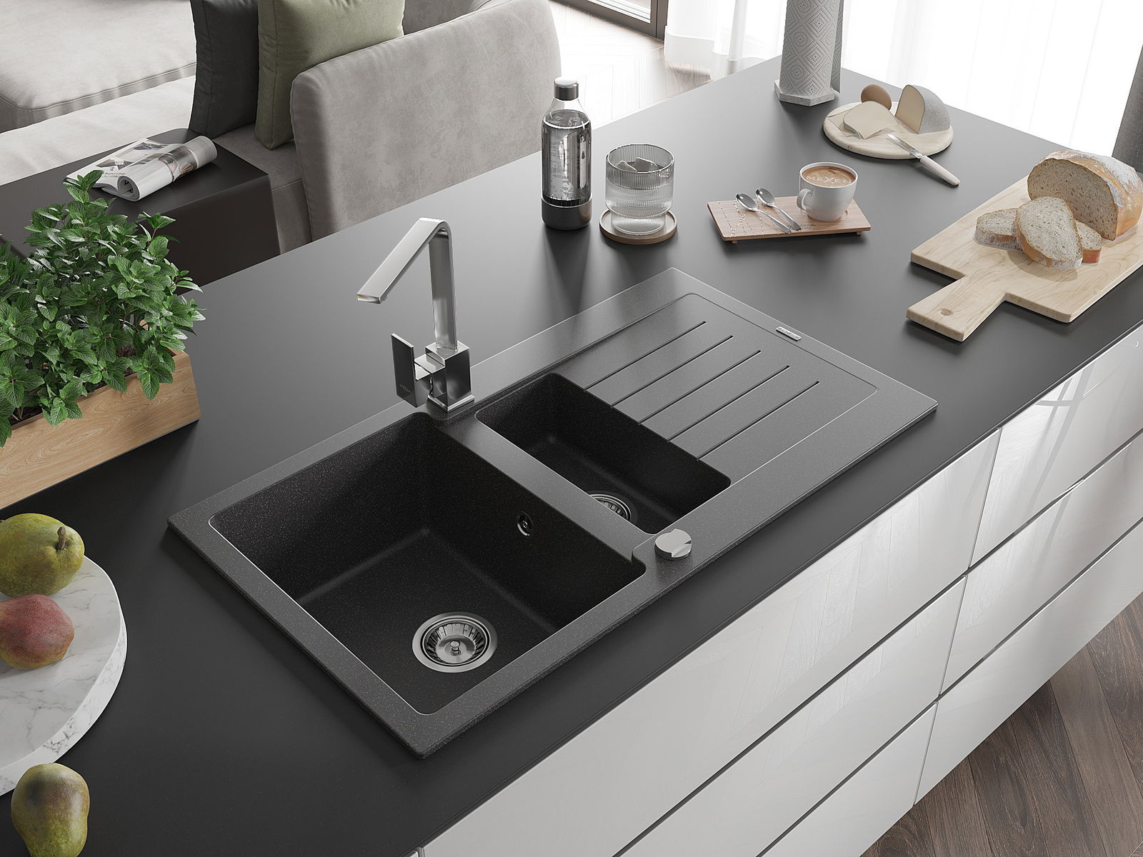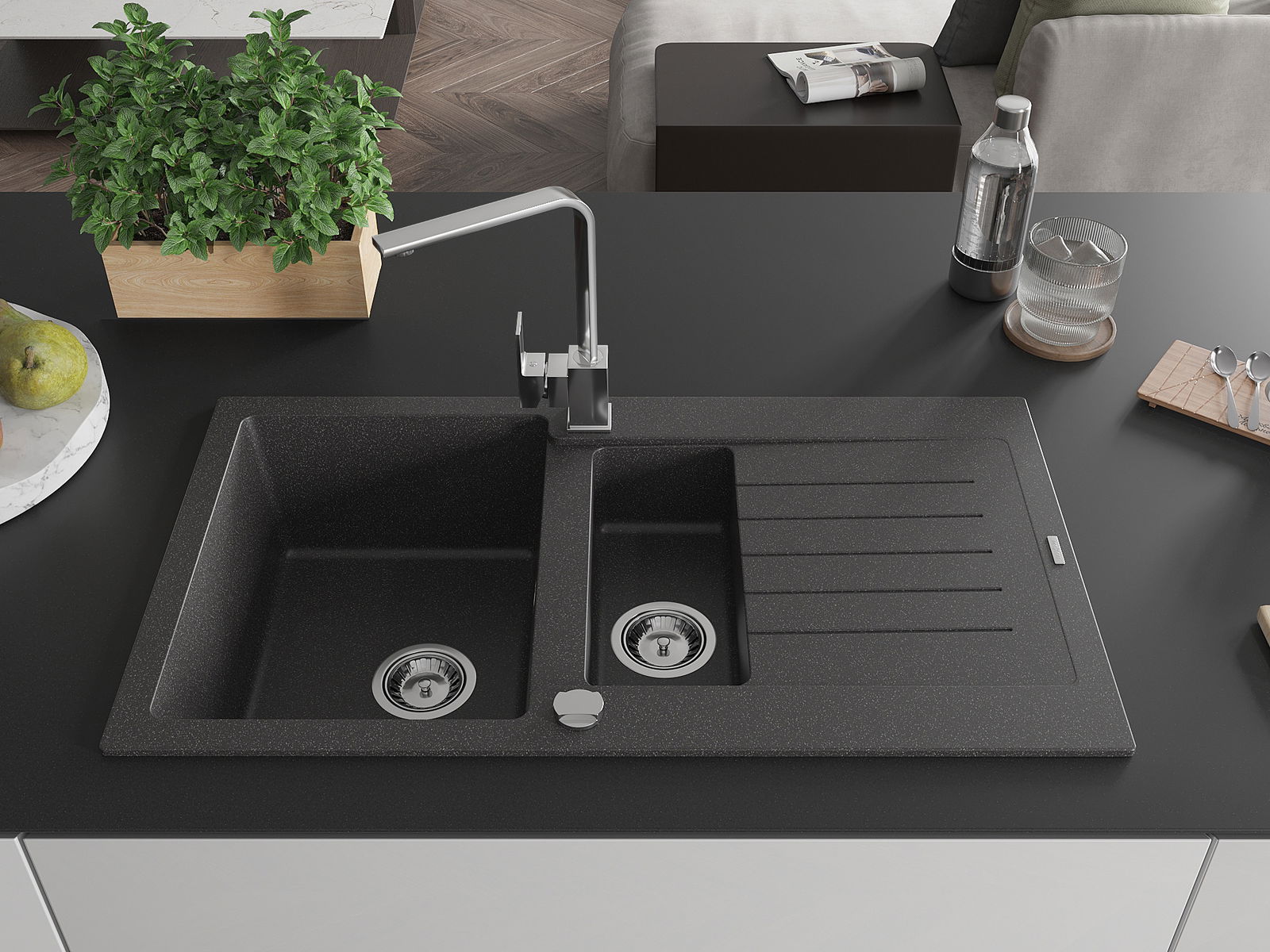 Chiuveta a fost realizată din granit de înaltă calitate. Reprezintă un complement elegant și, mai presus de toate, practic pentru orice bucătărie, indiferent de stilul său. Calitatea înaltă și durabilitatea granitului asigură o utilizare de lungă durată.