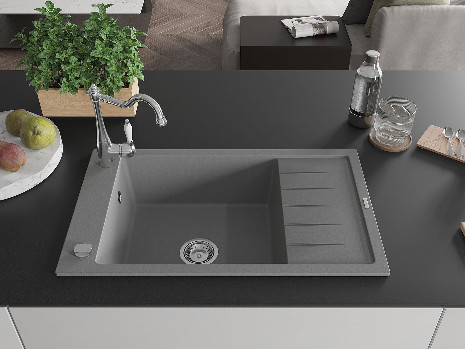 Chiuveta a fost realizată din granit de înaltă calitate. Reprezintă un complement elegant și, mai presus de toate, practic pentru orice bucătărie, indiferent de stilul acesteia. Calitatea înaltă și durabilitatea granitului asigură o utilizare de lungă durată.