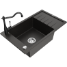 Mexen Elias chiuvetă din granit cu 1 compartiment cu scurgător și baterie de bucătărie Carla, negru/metalic argintiu