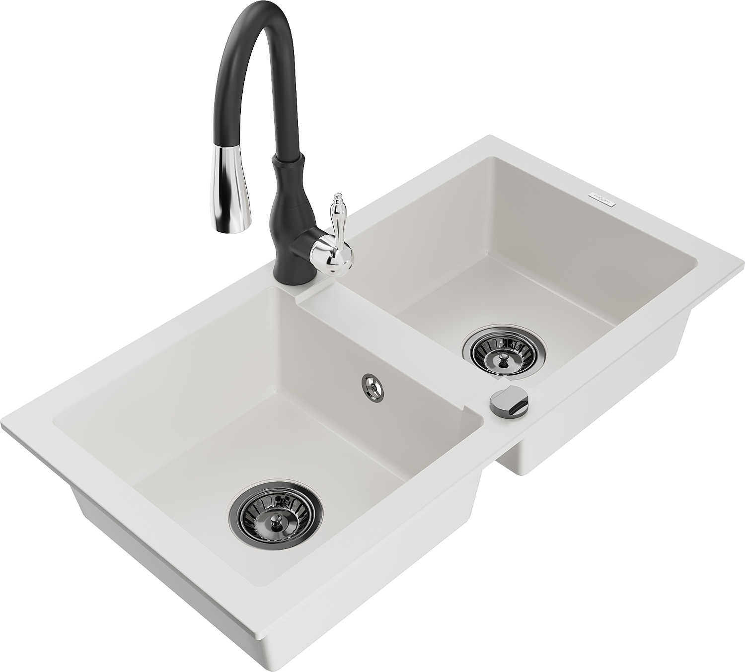 Mexen Mario chiuvetă de bucătărie din granit cu 2 compartimente, cu baterie Savita, albă - 6504-20-672601-70