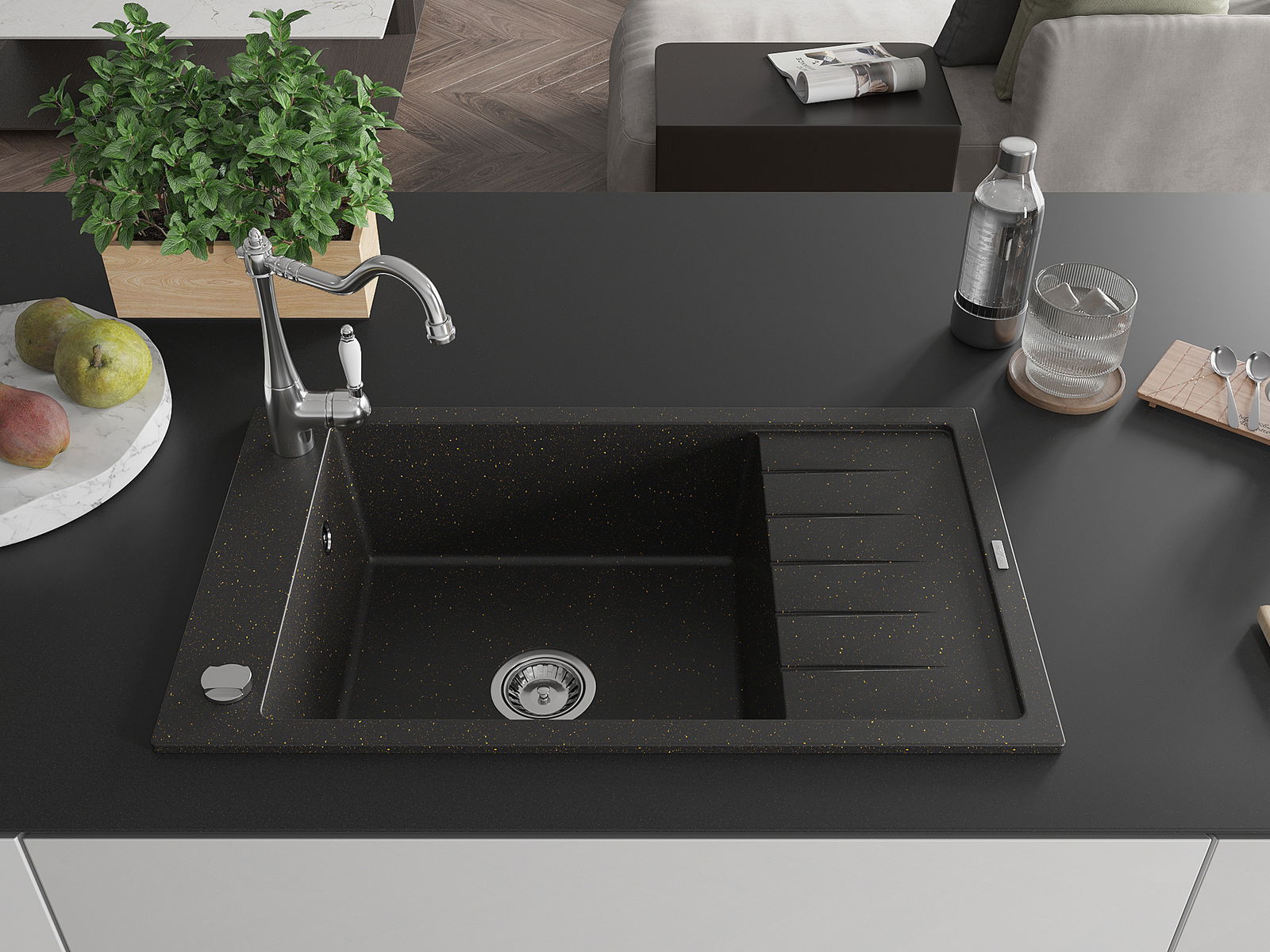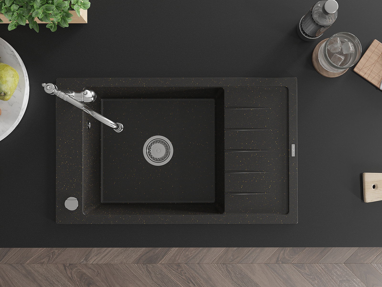 Chiuveta a fost realizată din granit de înaltă calitate. Reprezintă un complement elegant și, mai presus de toate, practic pentru orice bucătărie, indiferent de stilul acesteia. Calitatea înaltă și durabilitatea granitului asigură o utilizare de lungă durată.