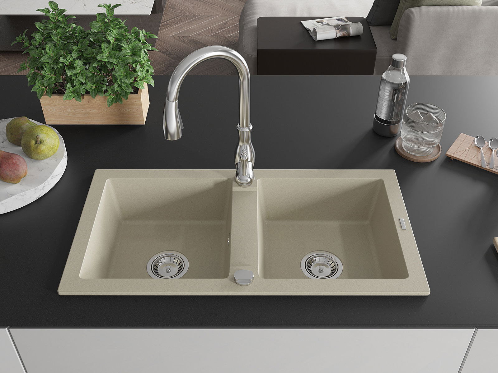 Suprafața chiuvetei este rezistentă la pete și decolorarea, datorită căreia este ușor de curățat și își păstrează culoarea mult timp. Estetică și practic completarea fiecărei bucătării.