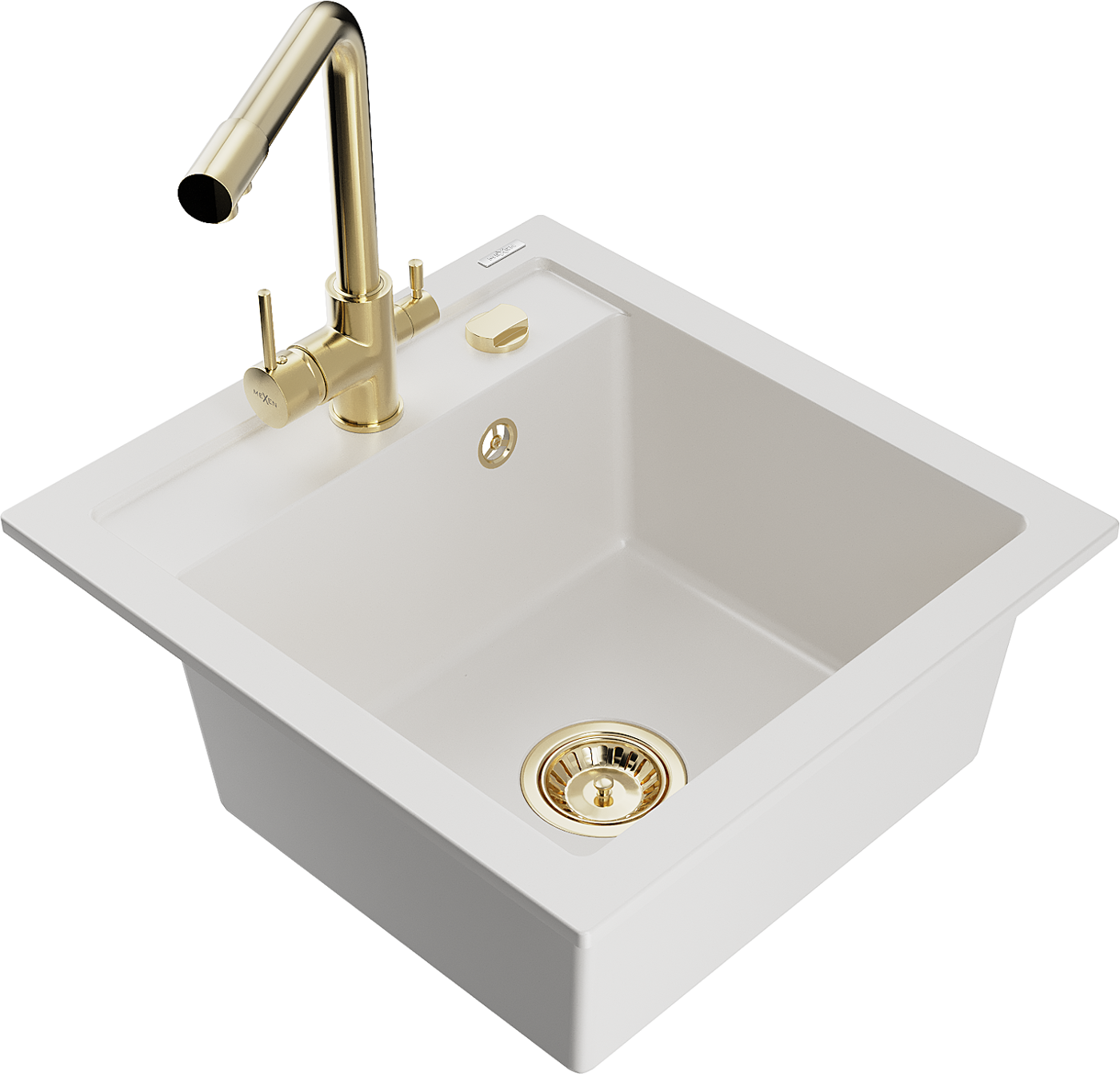 Suprafața chiuvetei este rezistentă la pete și decolorarea, datorită căreia este ușor de curățat și își păstrează culoarea mult timp. Estetică și practic completarea fiecărei bucătării.