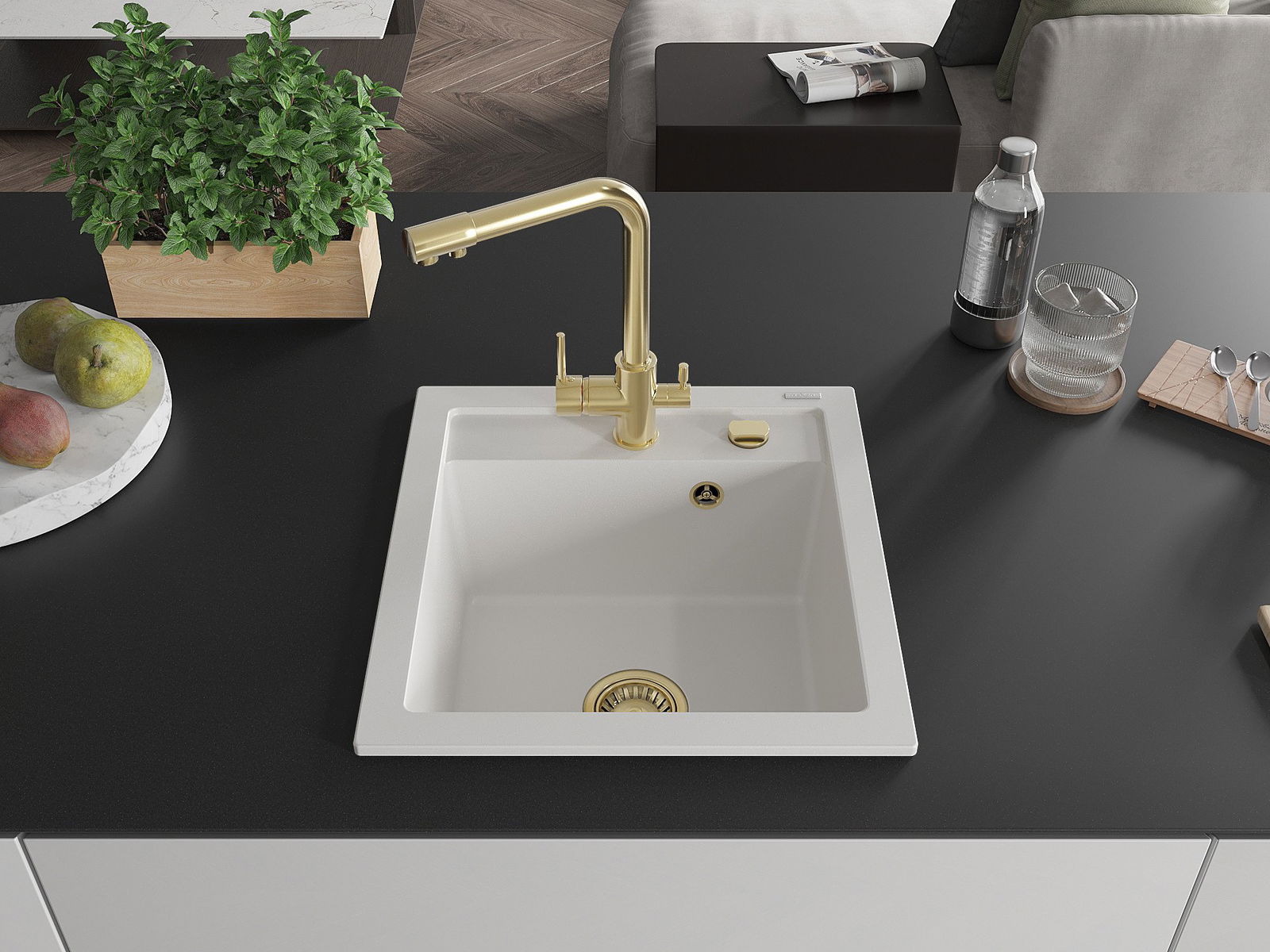 Mexen Vito chiuvetă din granit cu 1 compartiment cu baterie de bucătărie Duero, alb - 6503-20-671600-50